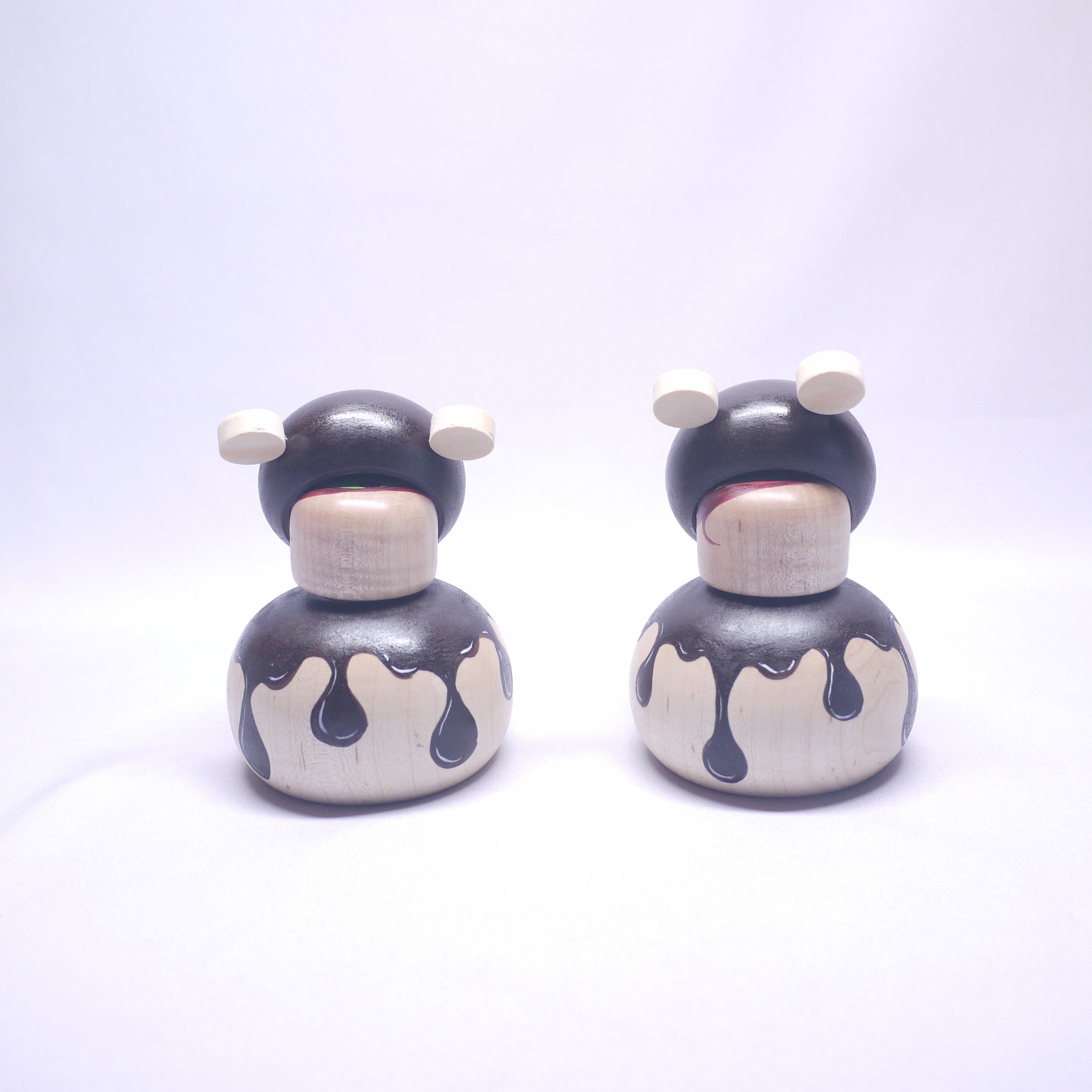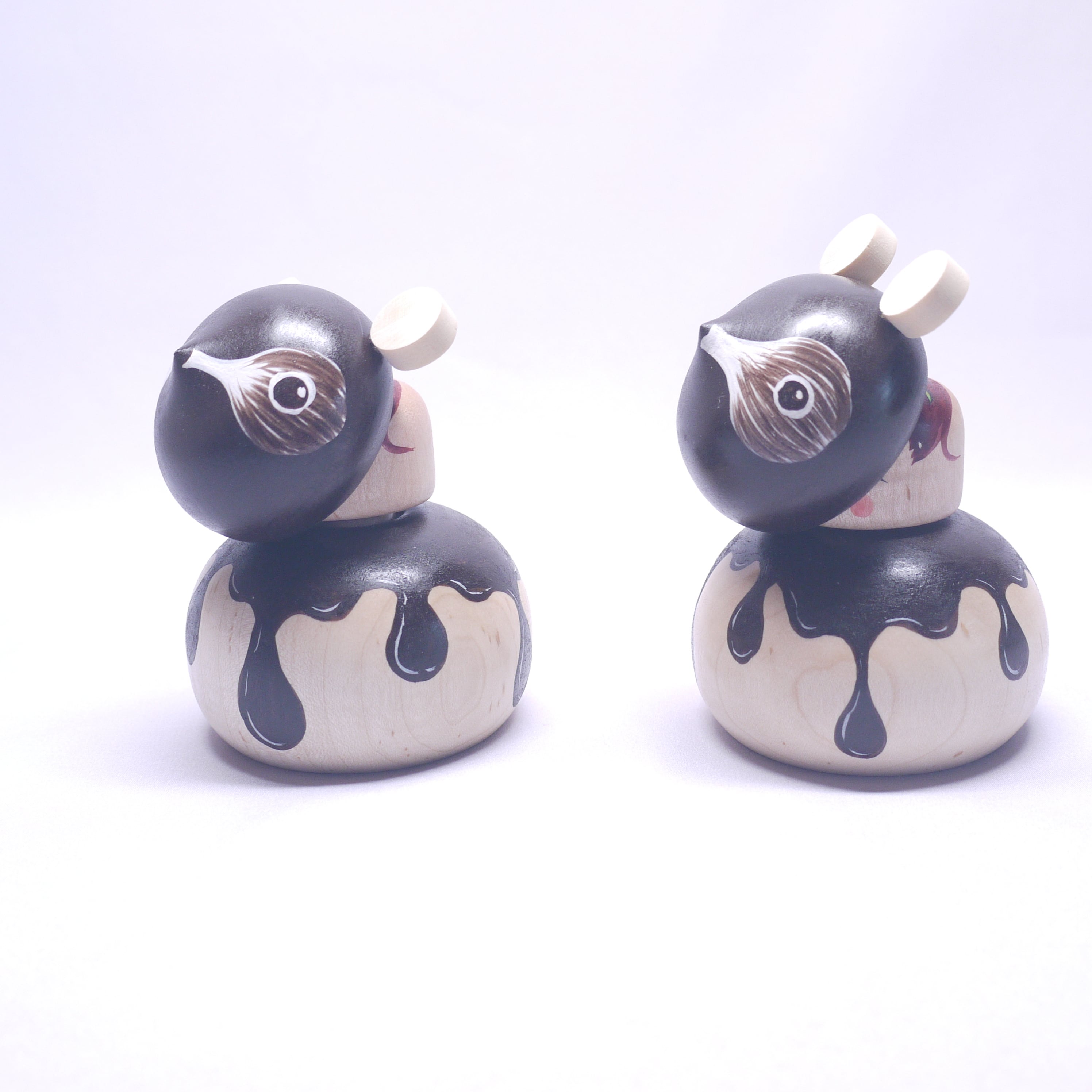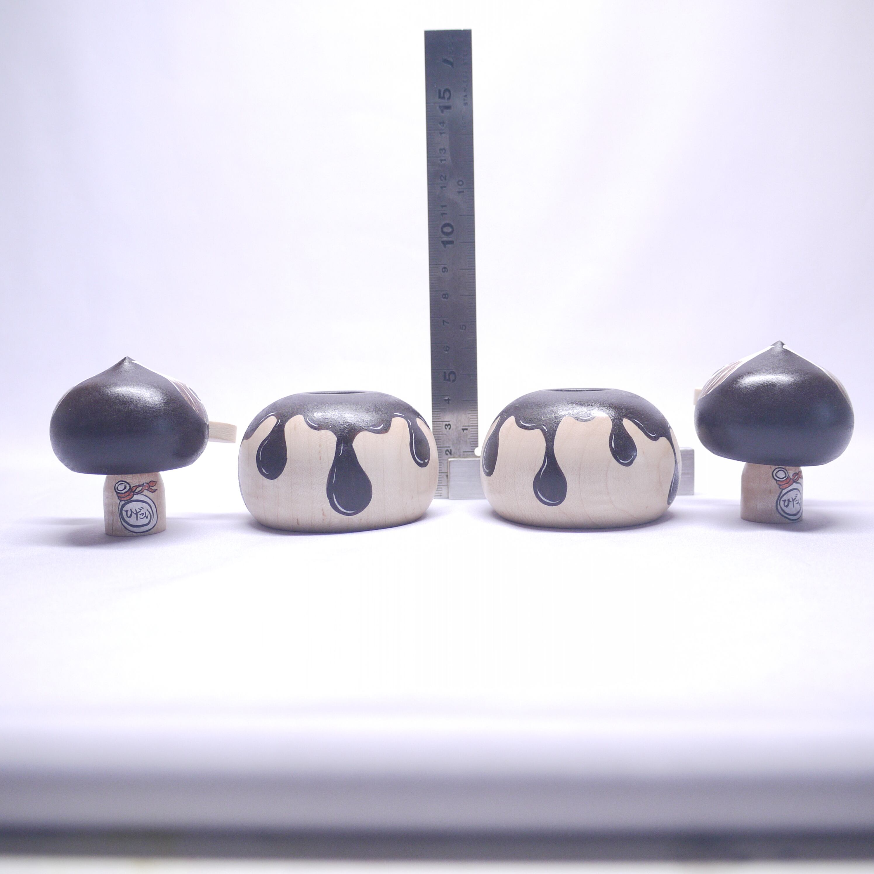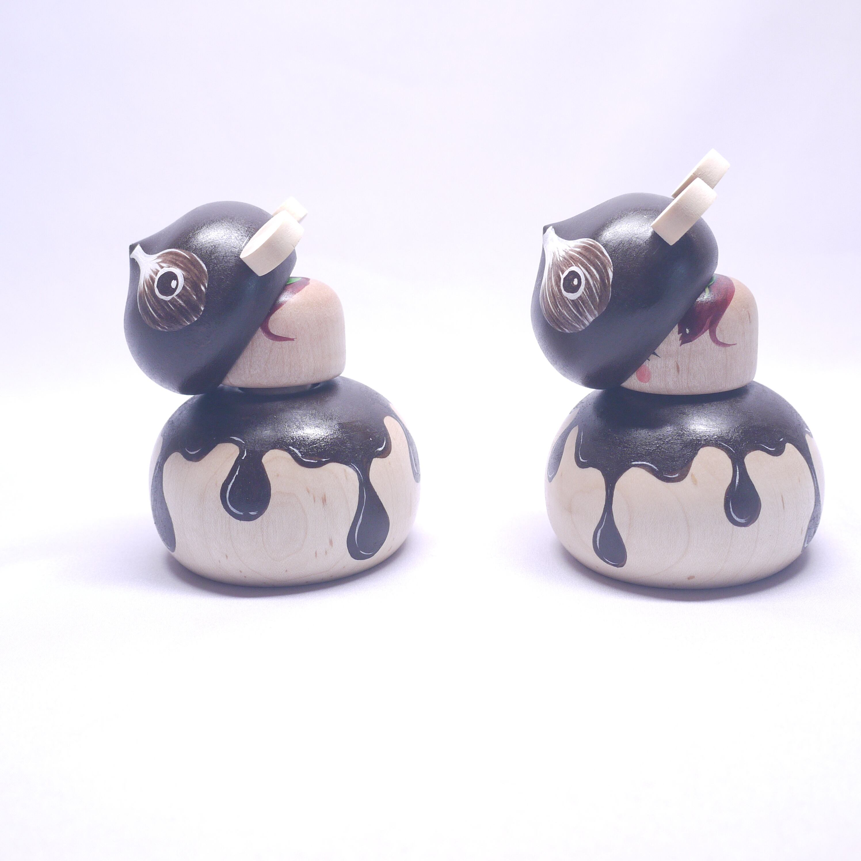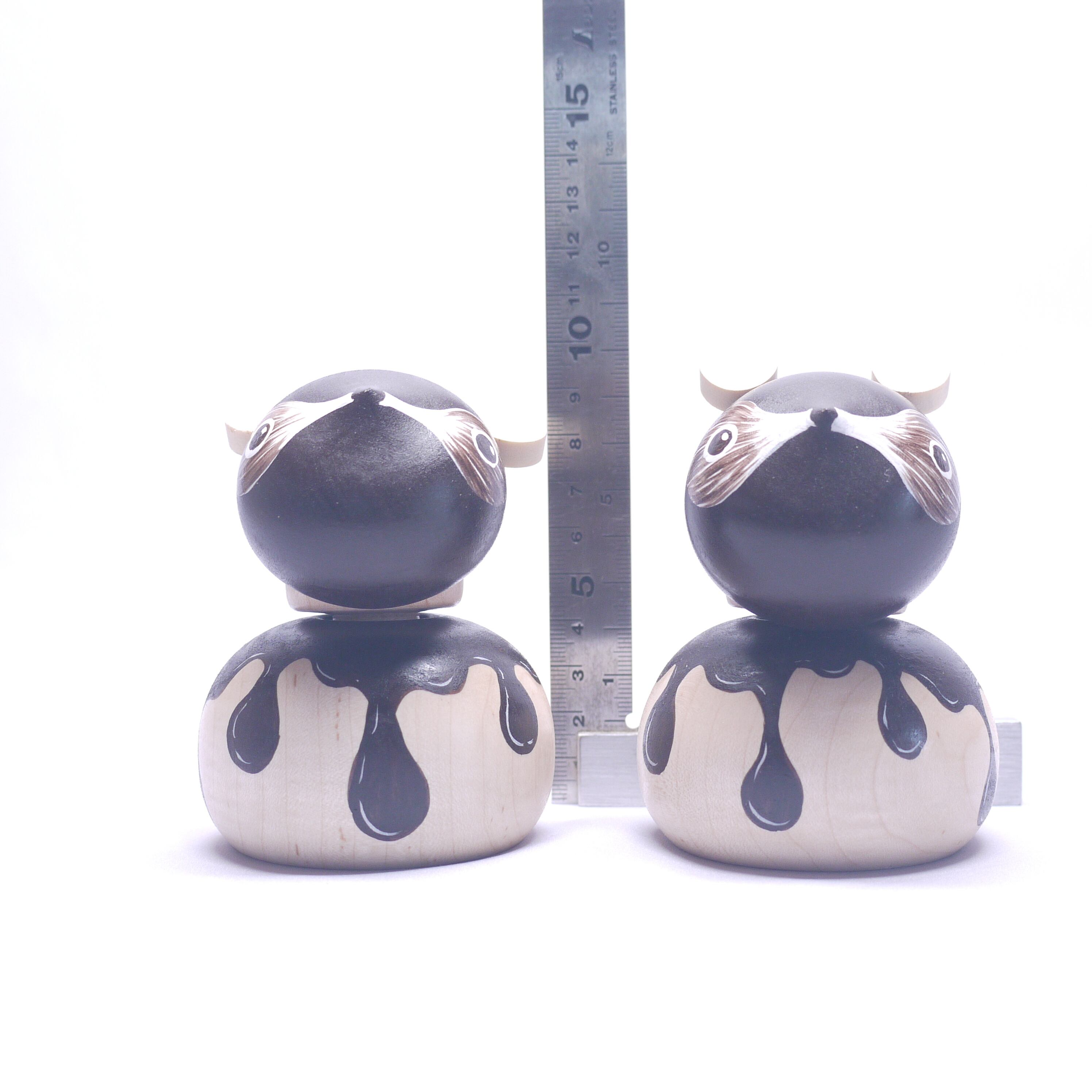 昭和生まれの洋菓子「たぬきケーキ」をモチーフにしたえじこ型の被り物系こけし。