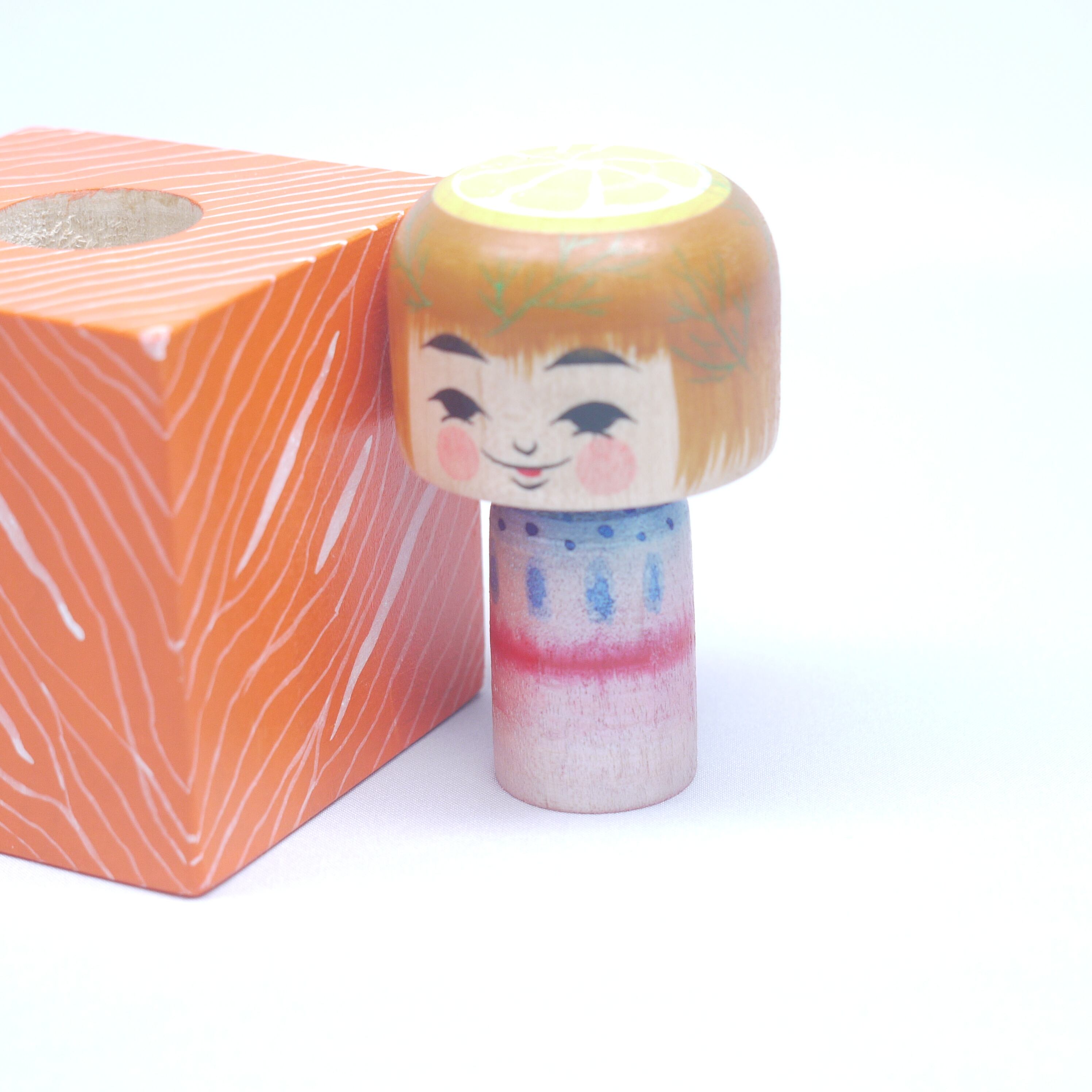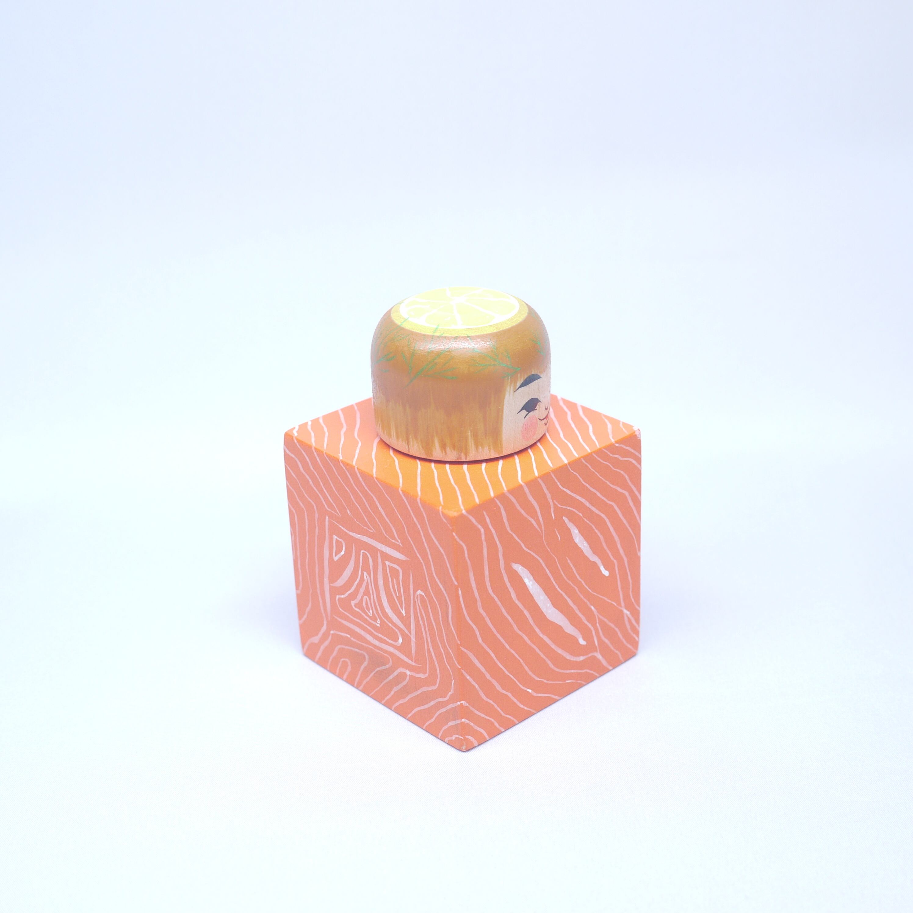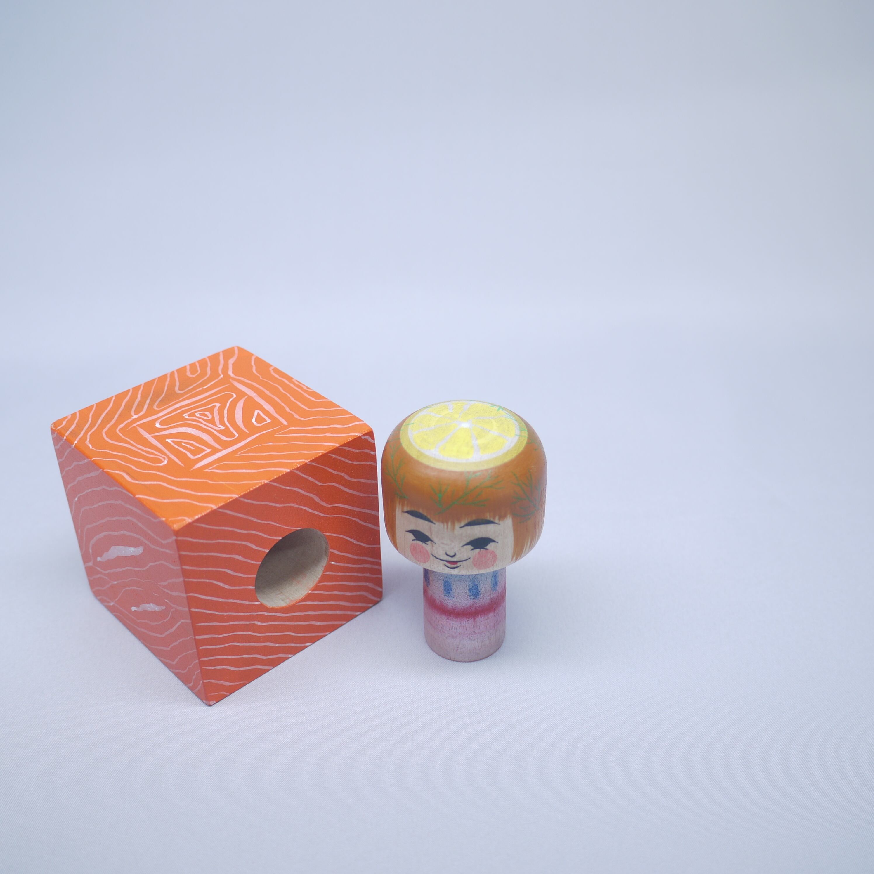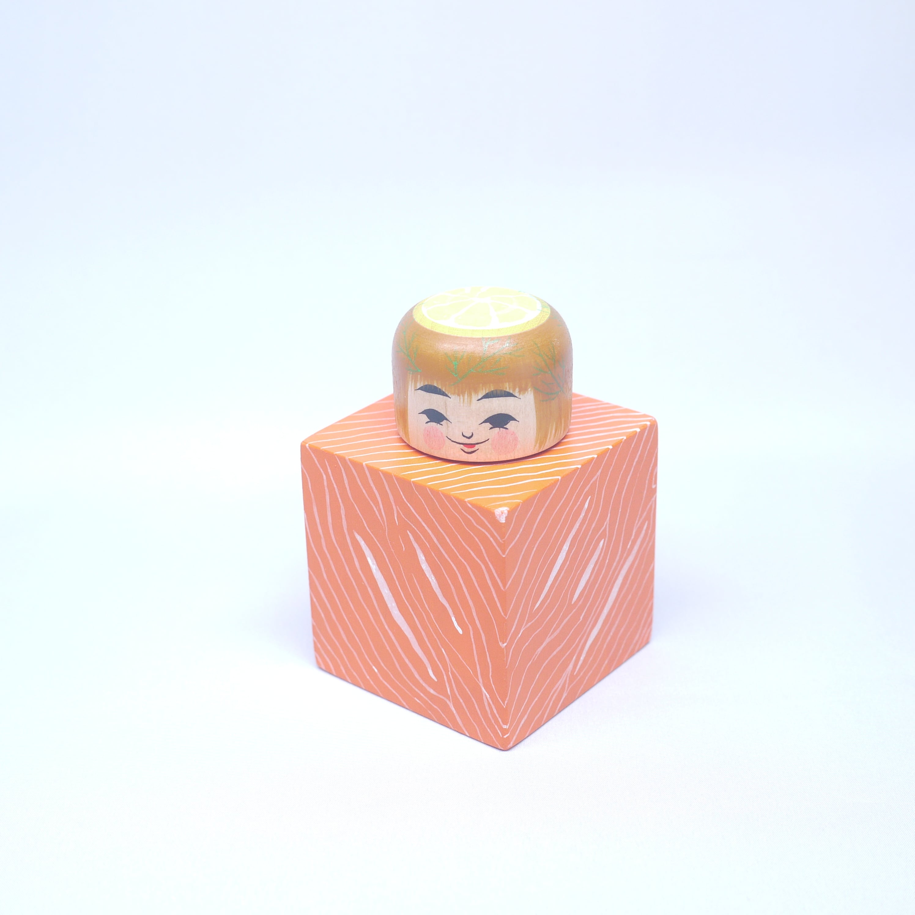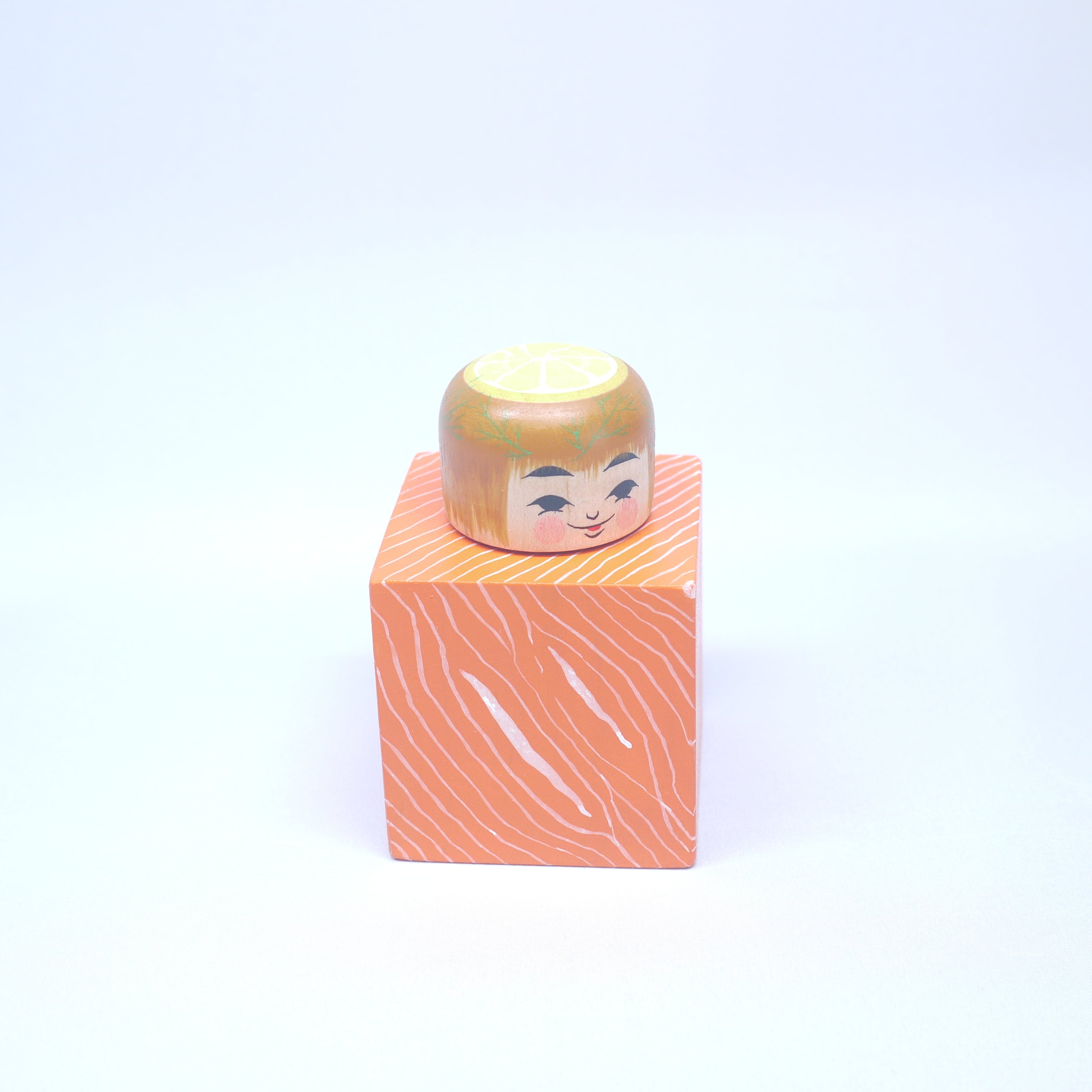 鮭(サーモン)をモチーフにしたえじこ型のこけし。