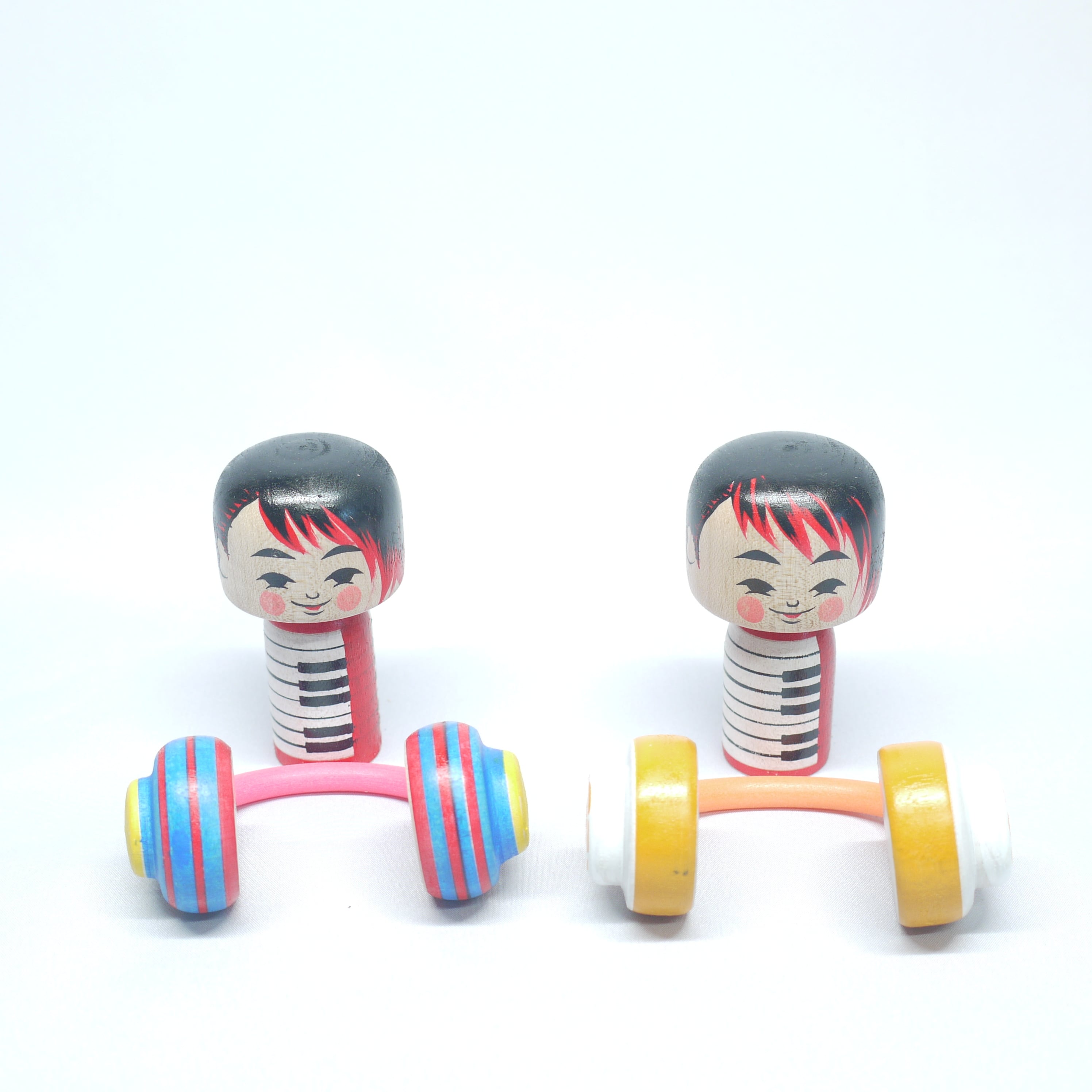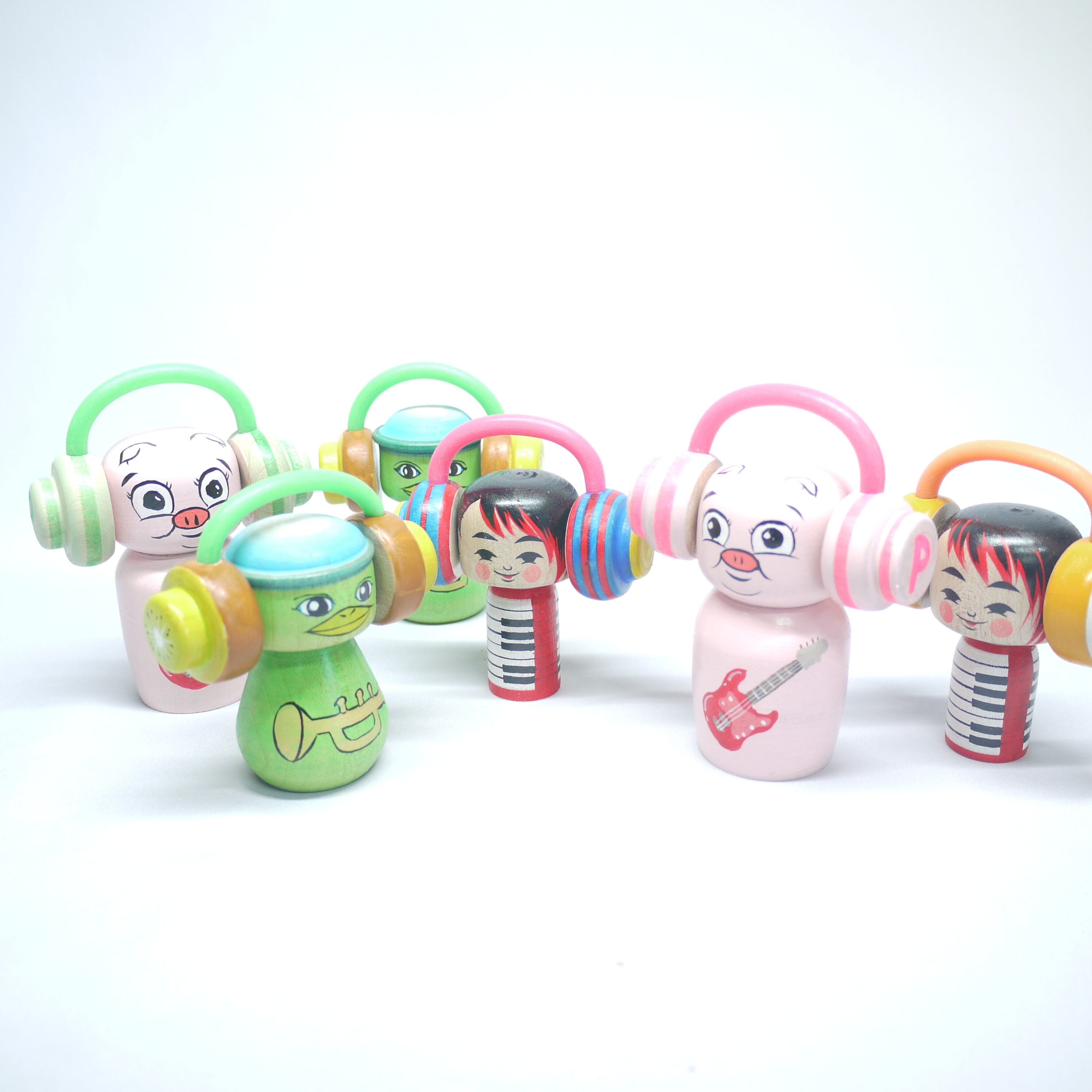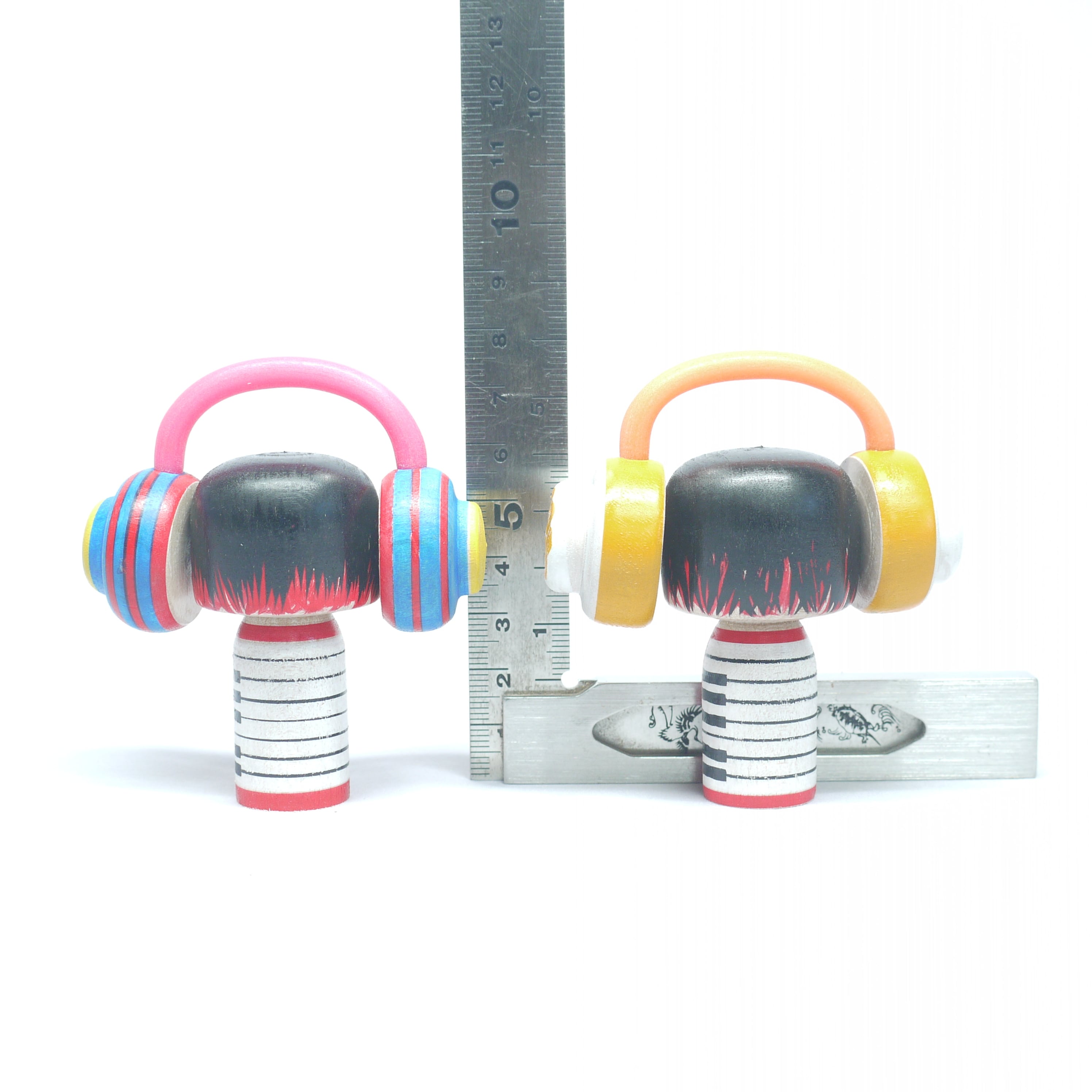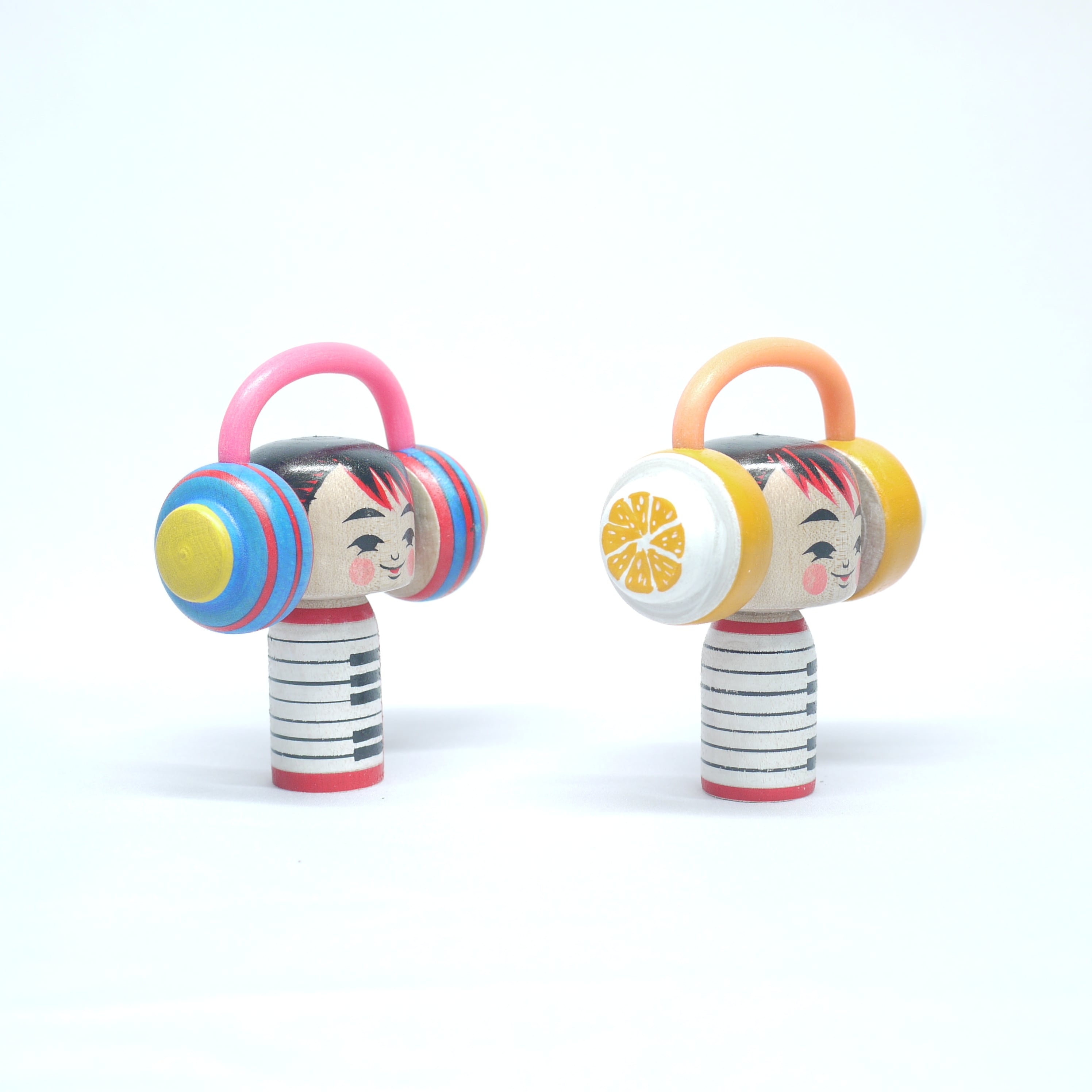 「音楽」と「ヘッドフォン」をテーマにしたこけし。