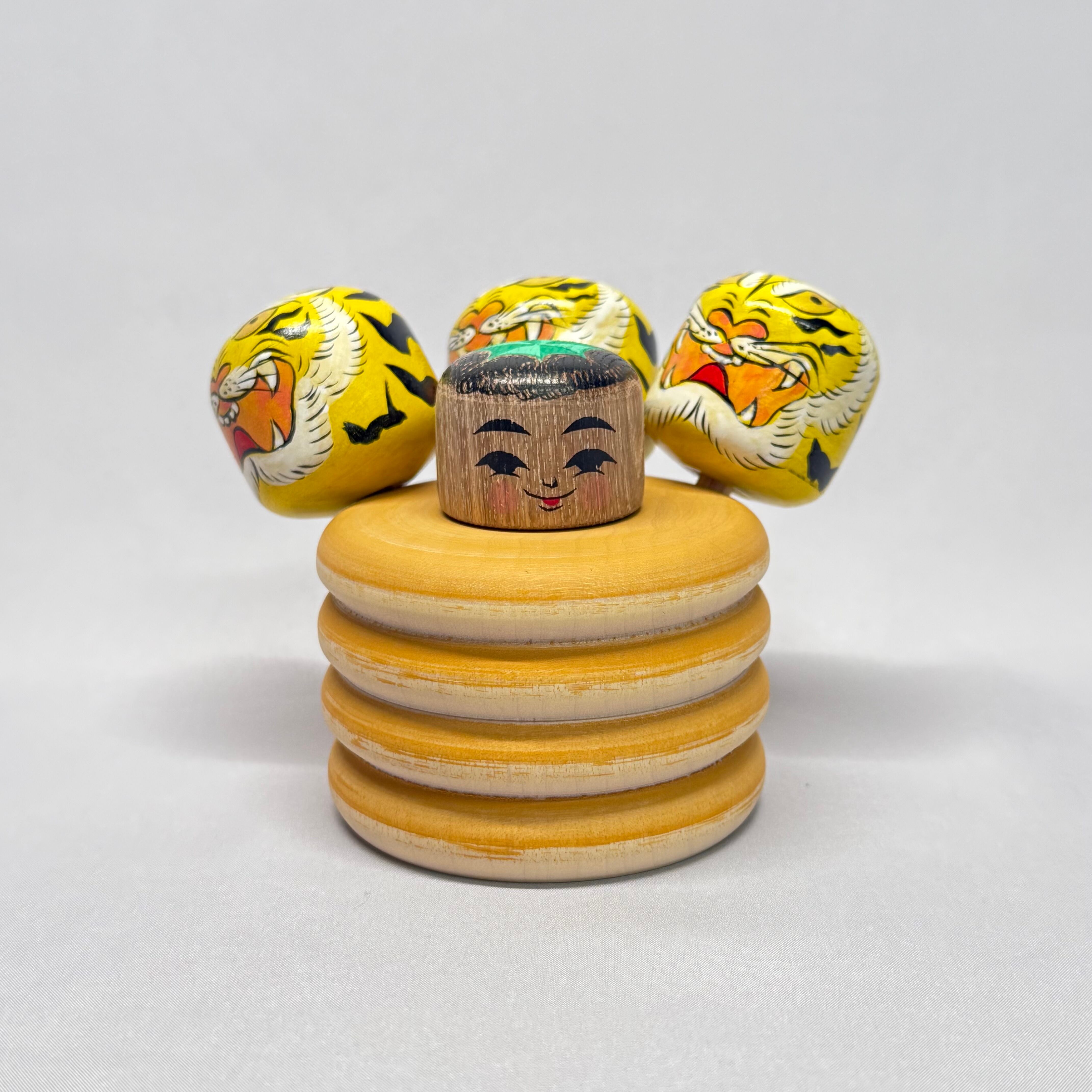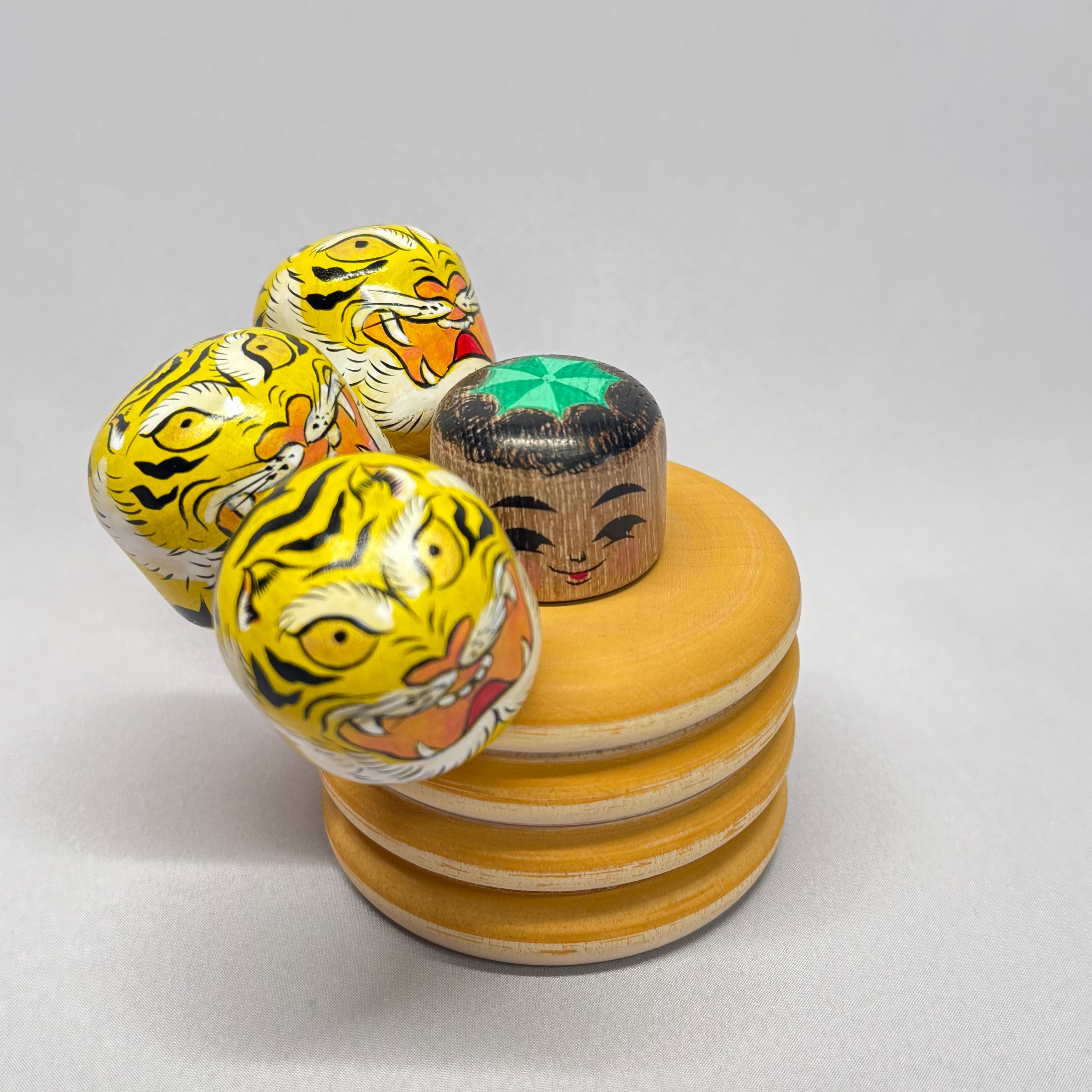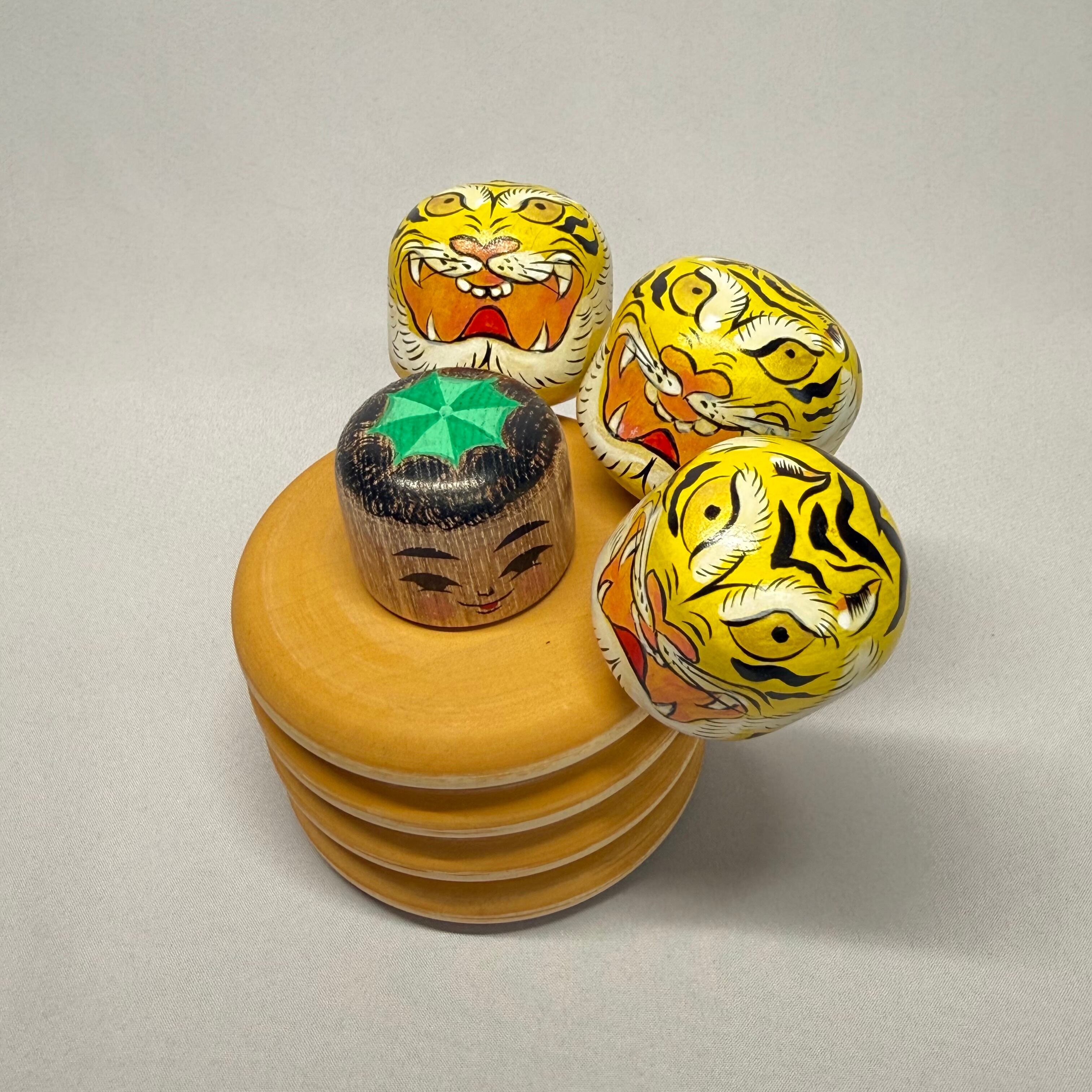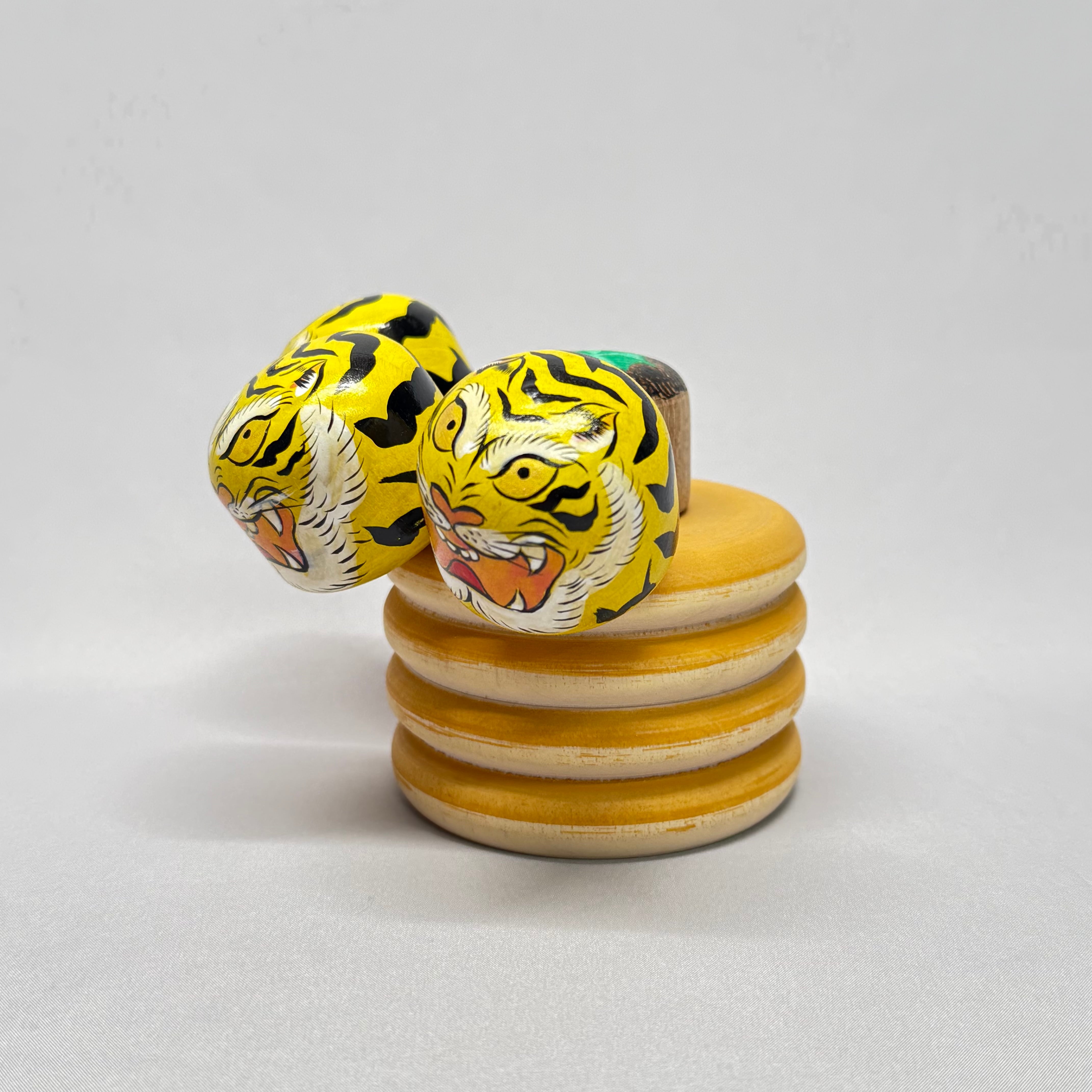 ※虎の頭は自由に回転しますが、一部で接触している箇所があります。回す場合は頭同士をやや開くように力を掛けて回して下さい。