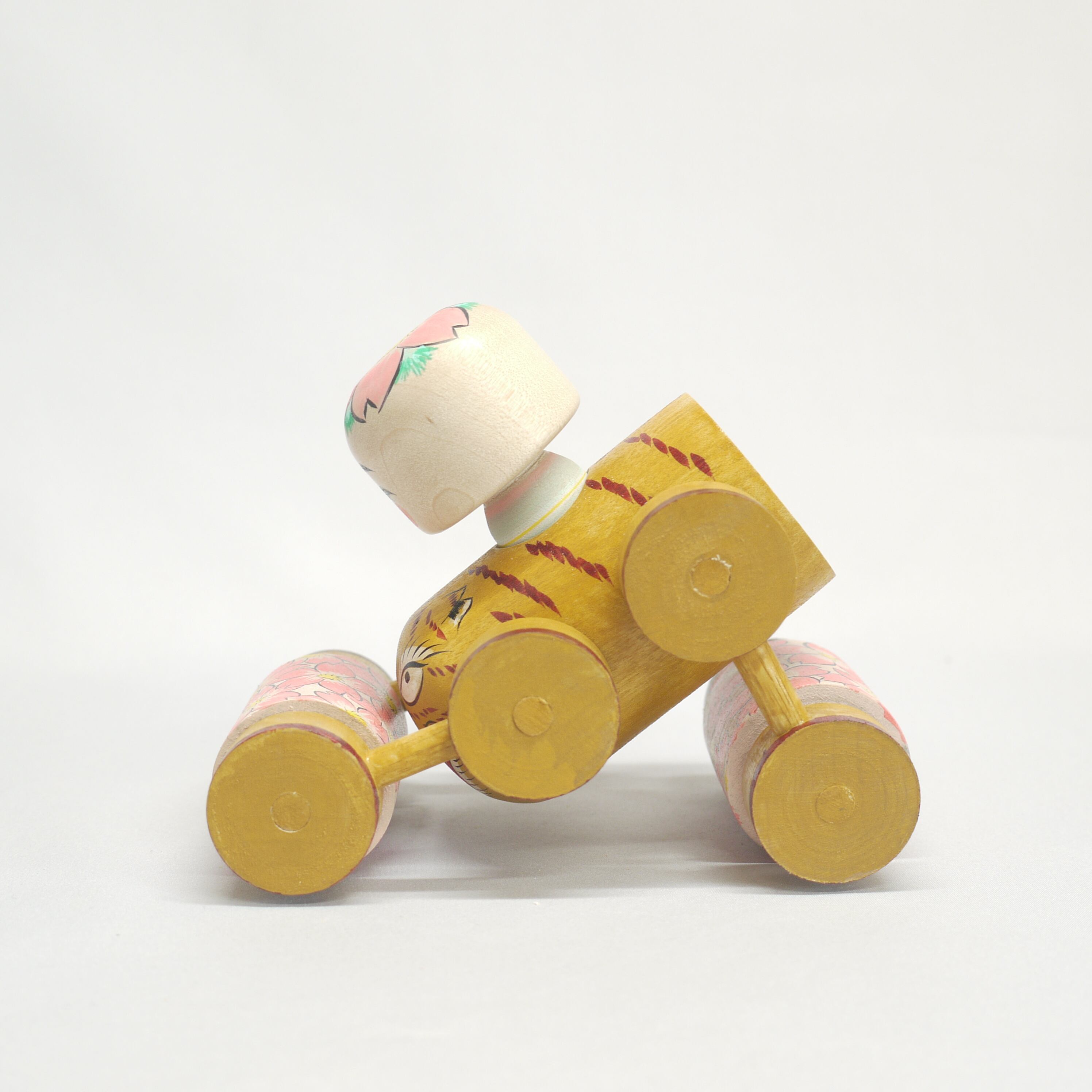 2023年製作のタンデム式ロードローラーをモチーフにした木地玩具、【ヌコロードローラー】。