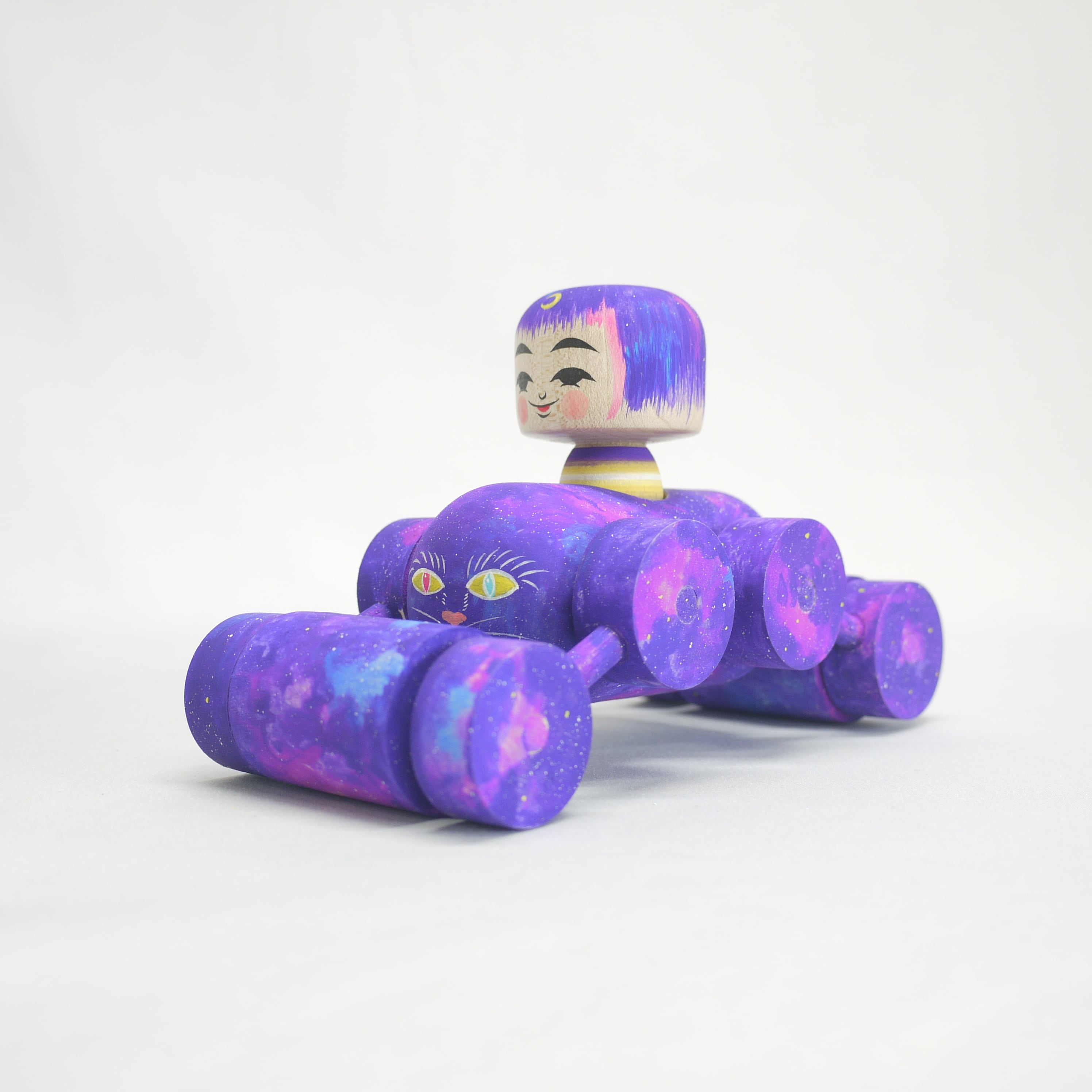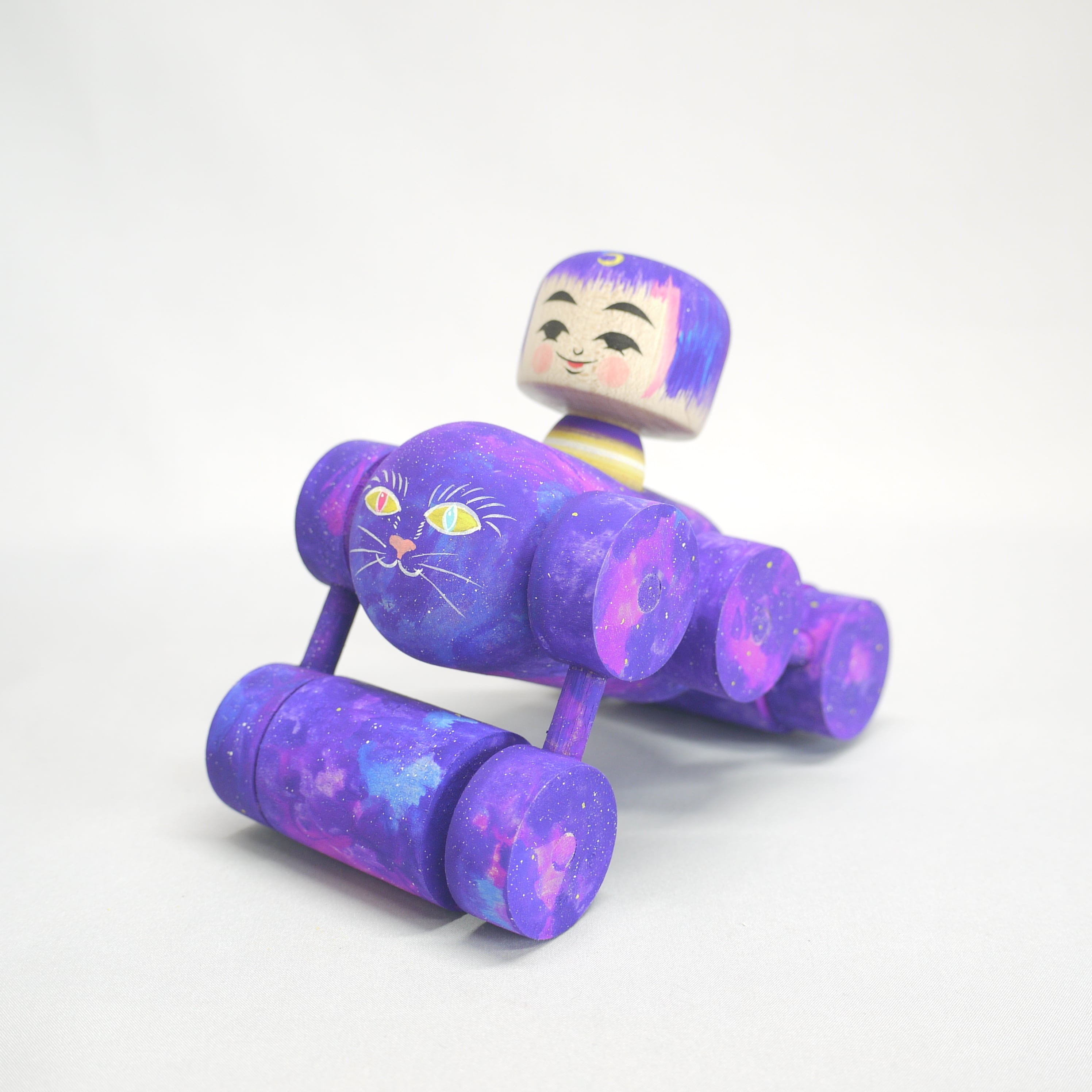 2023年製作のタンデム式ロードローラーをモチーフにした木地玩具、【ヌコロードローラー】。