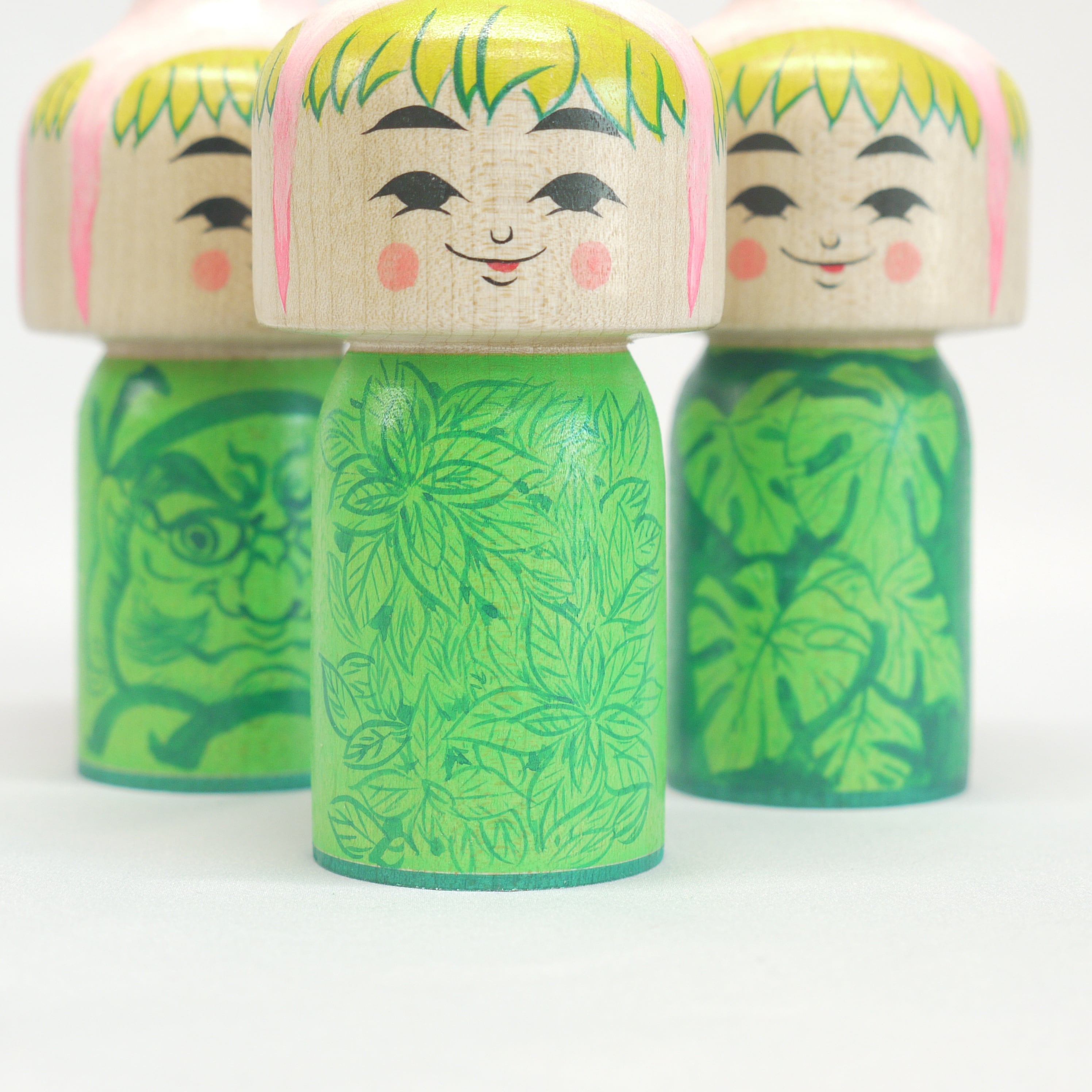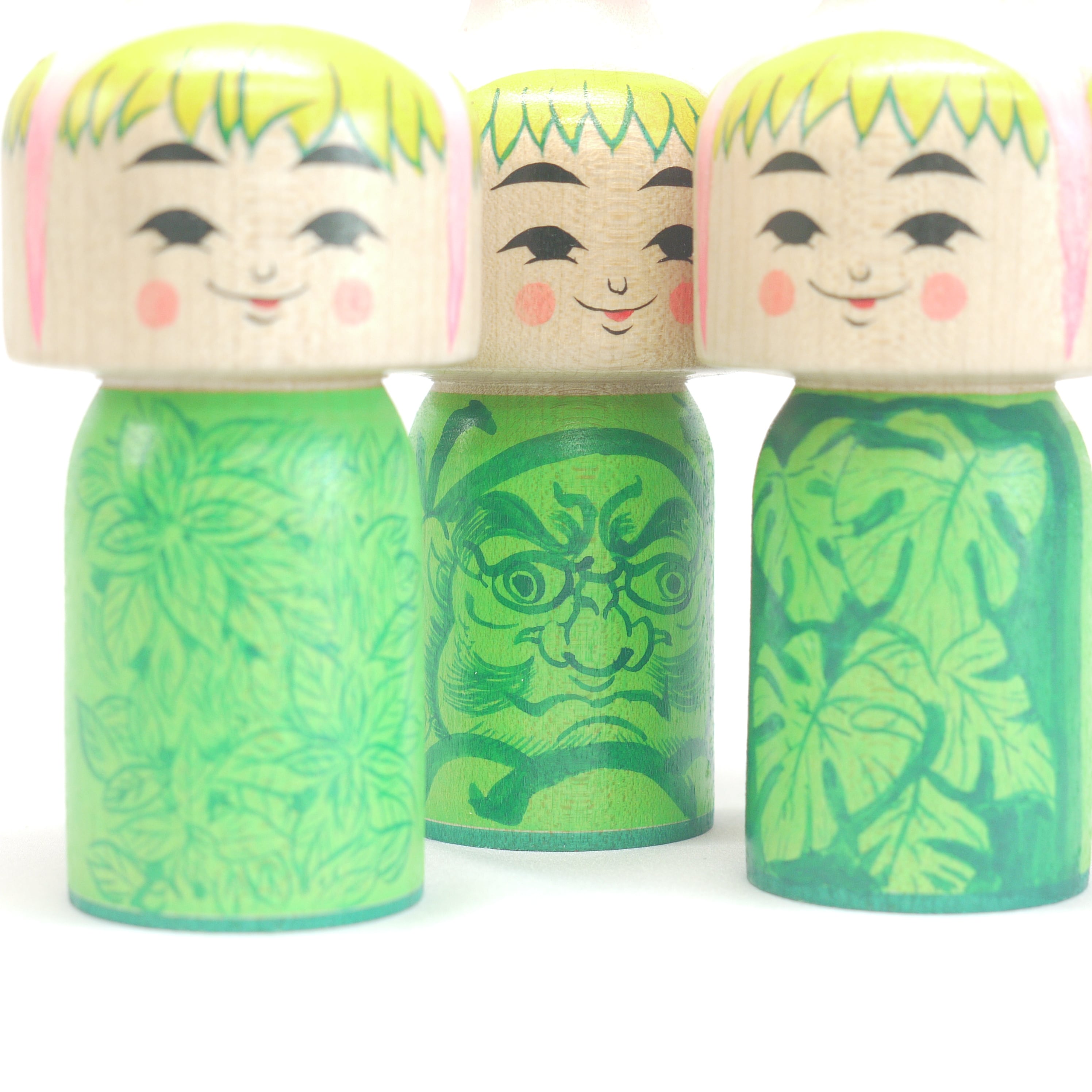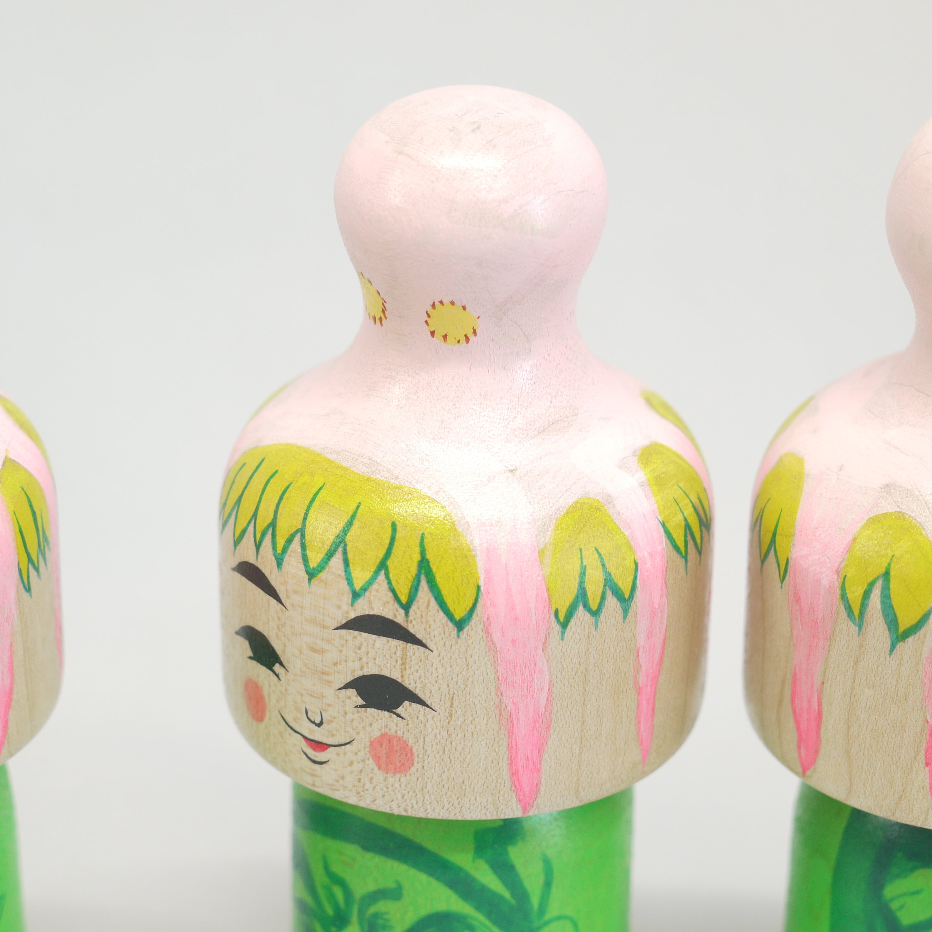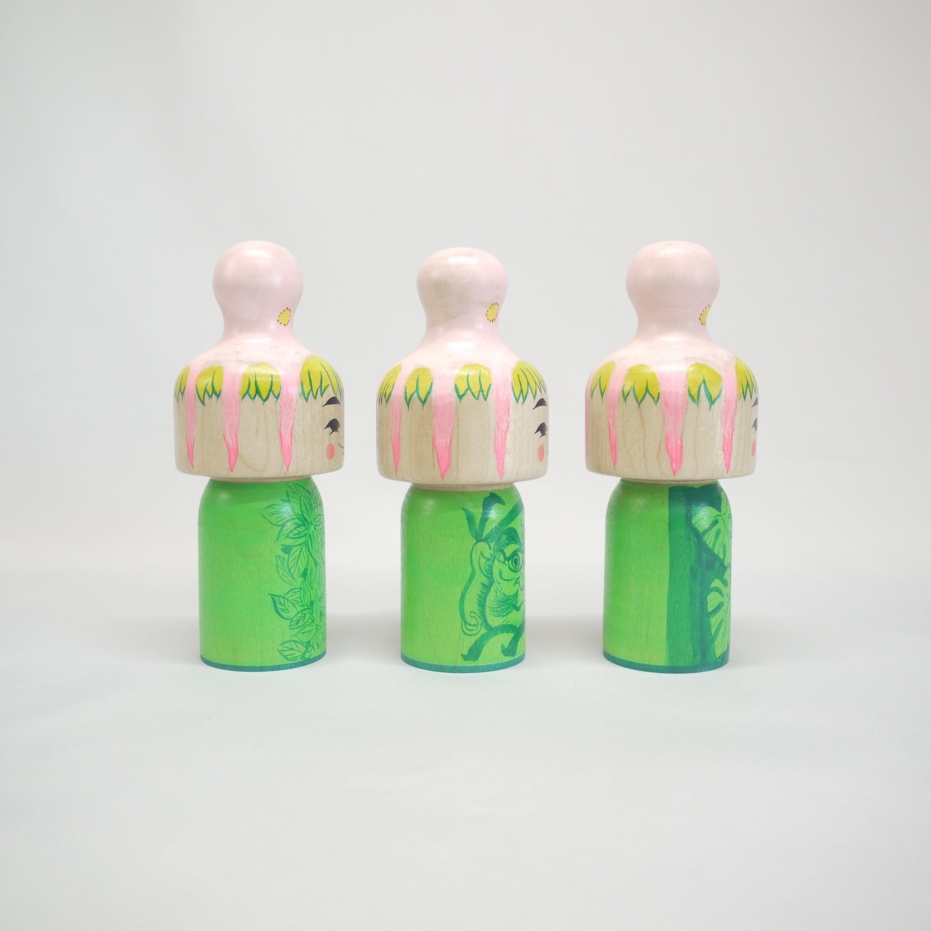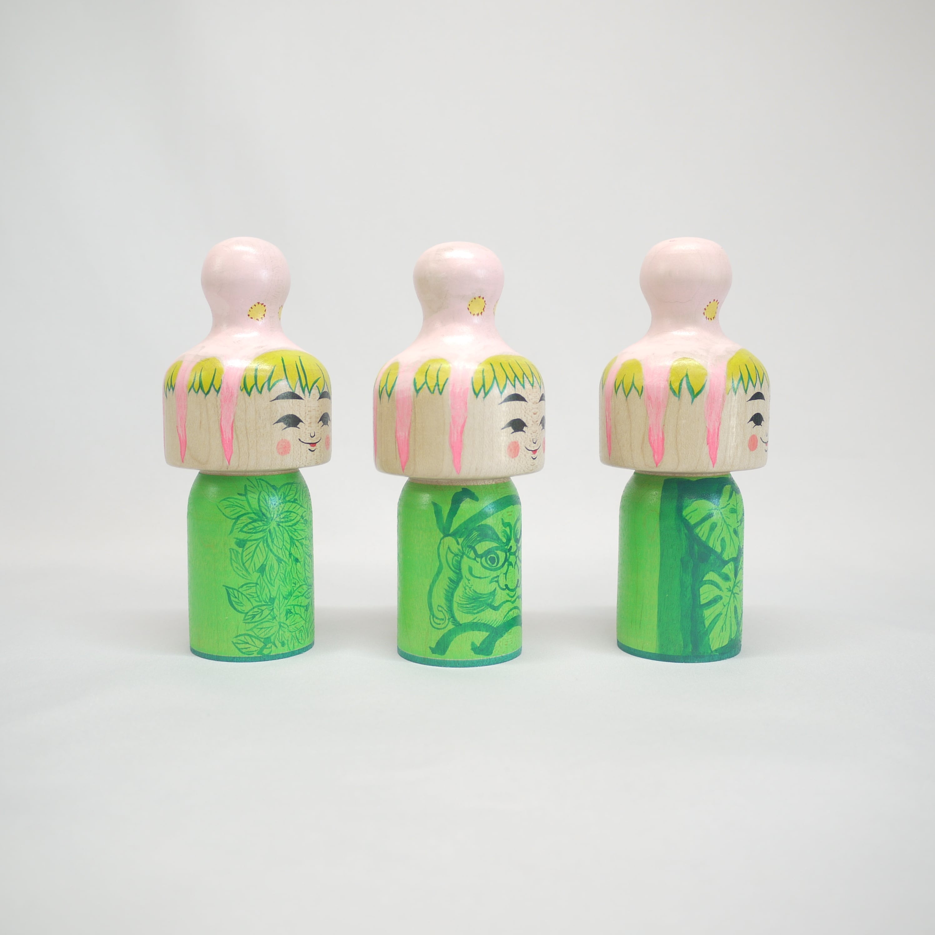 頭にタコを載せているこけし、頭にタコが乗っているこけし、タコに乗っかられたこけし、タコを肩車したこけし、、人によって見え方は様々。