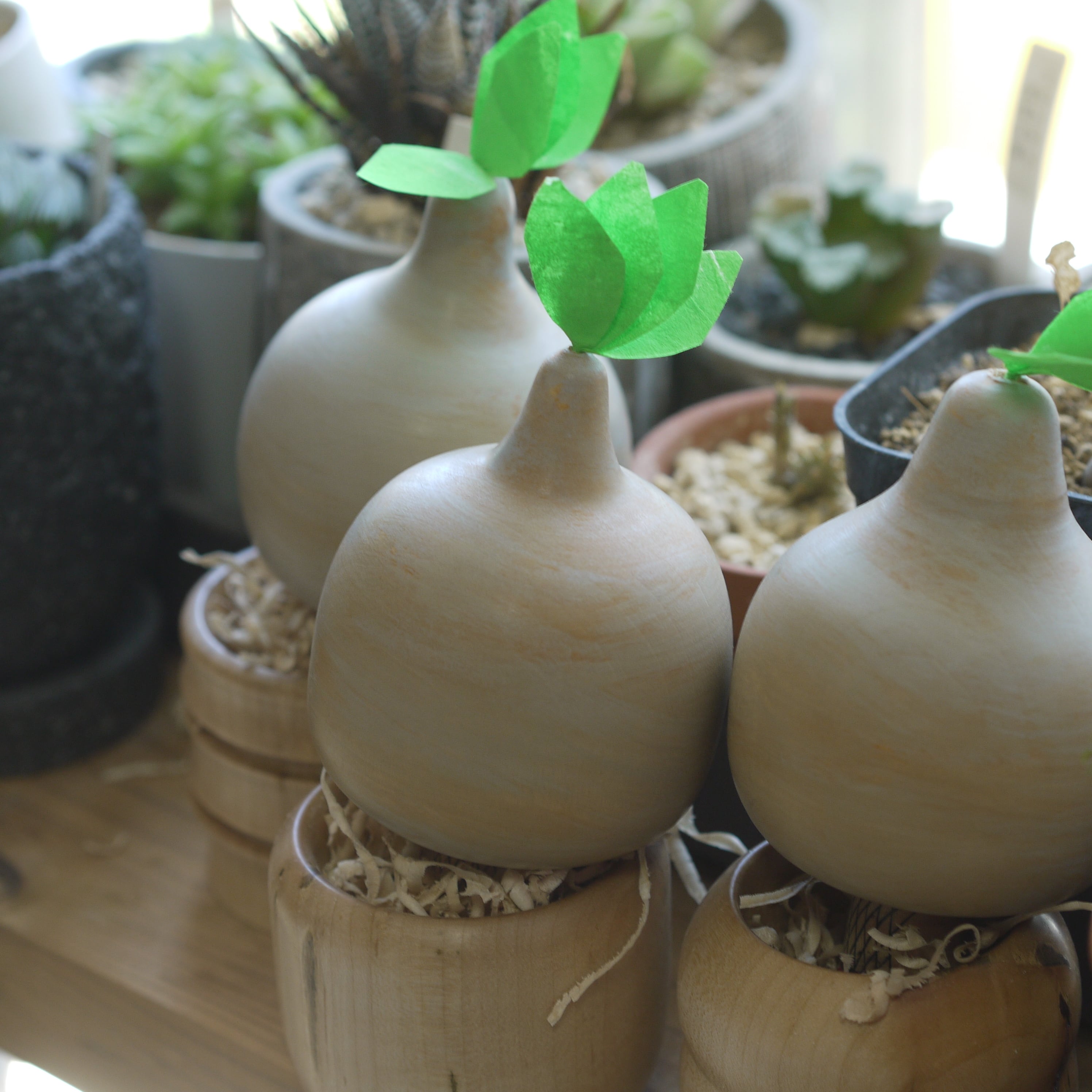 塊根植物をモチーフとした木地玩具。