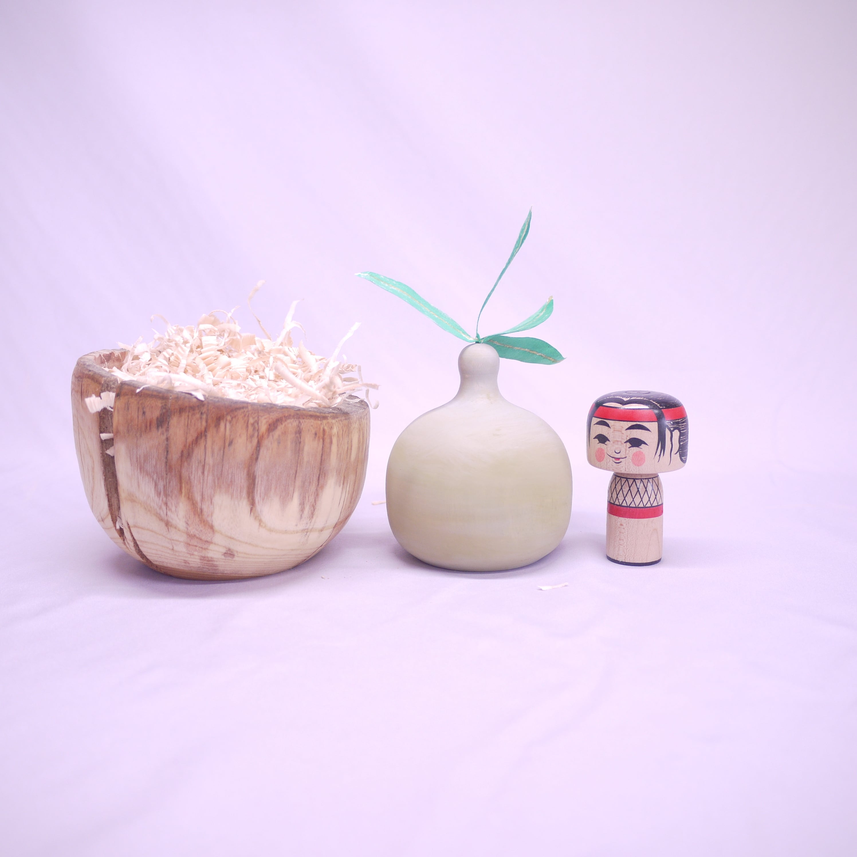・鉢に入ってる苔のようなものは、こけしを作る際に出た削り粉です。