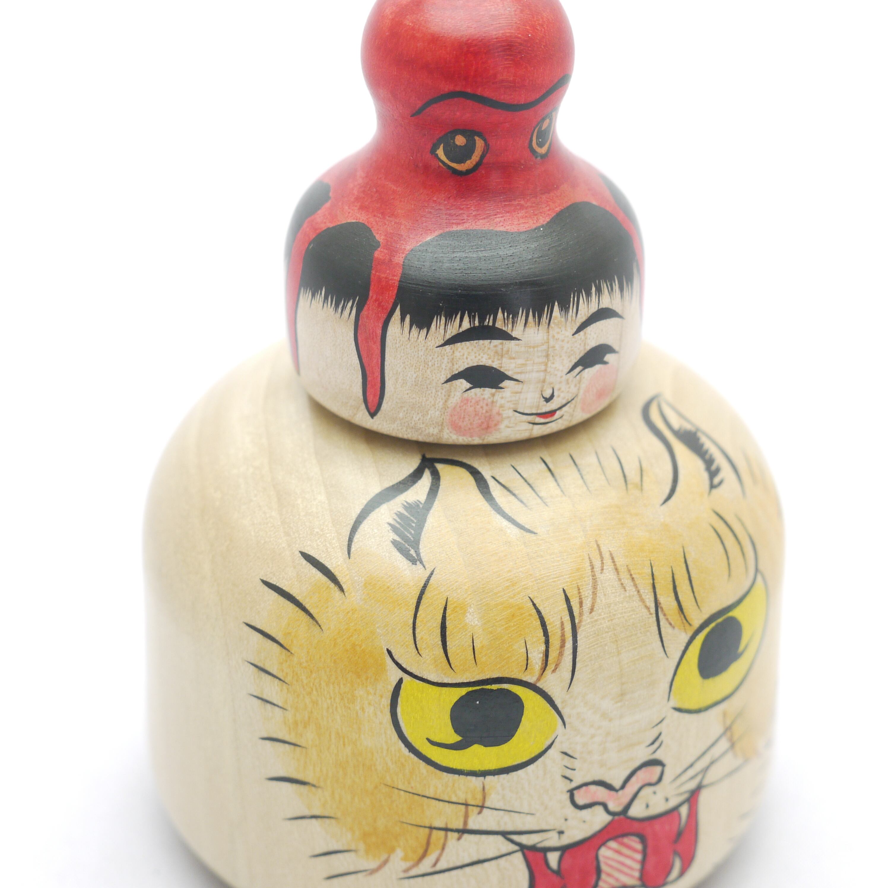 【猫えじこ】【茶ハチワレ】 【2寸たこのせこけし入れ】number2