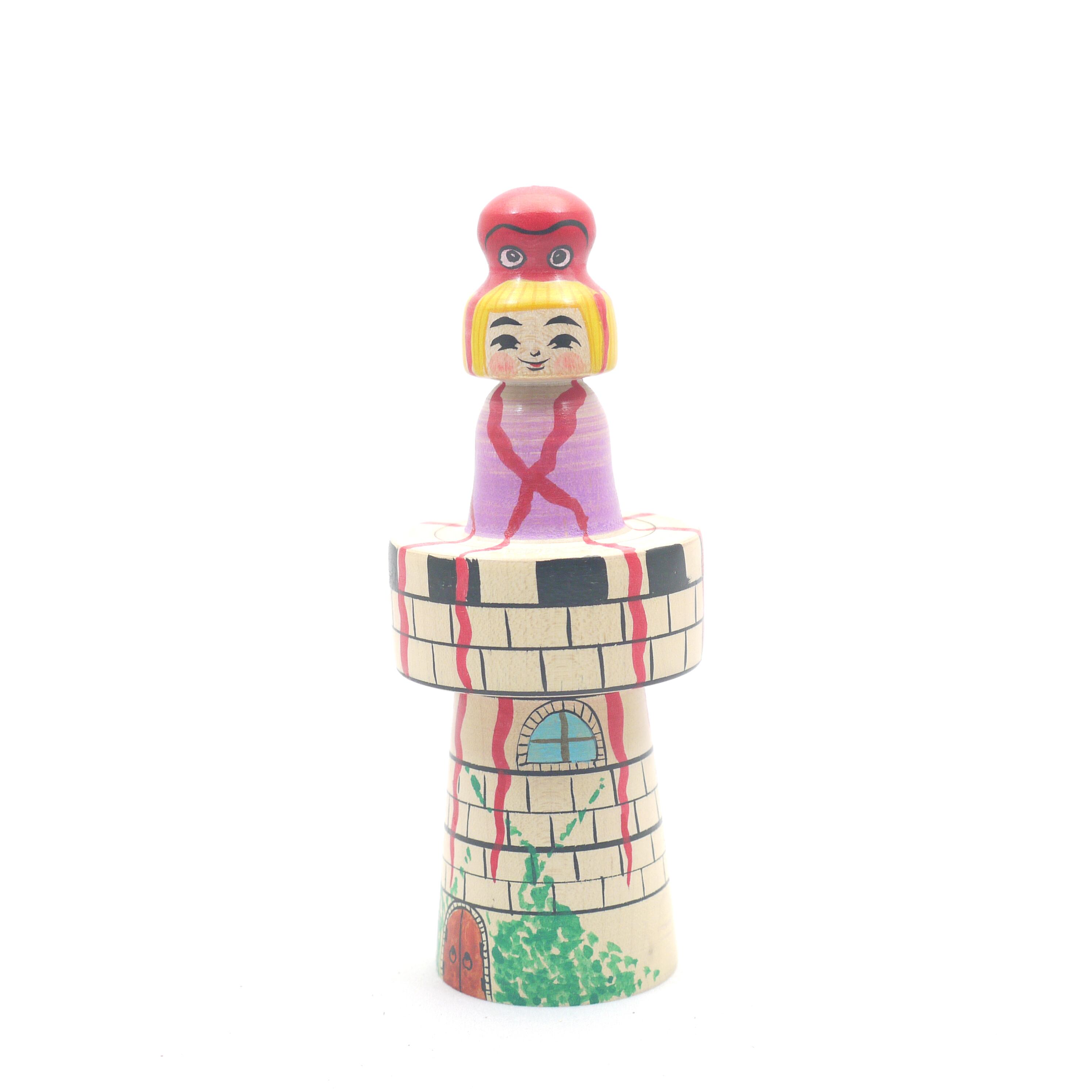 頭にタコが乗ったタコ乗せこけしをさらに「塔」の上に登らせてみました。