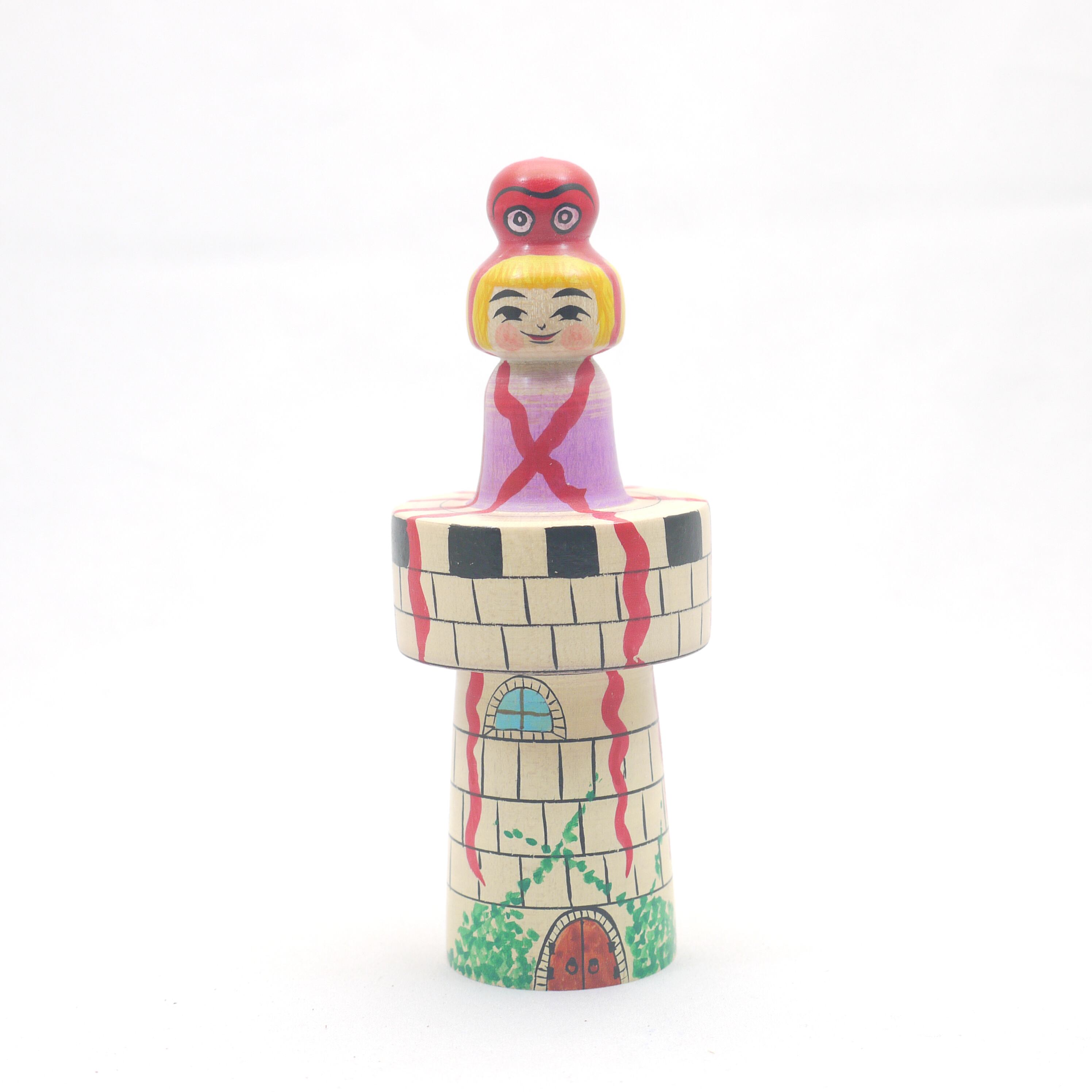 頭にタコが乗ったタコ乗せこけしをさらに「塔」の上に登らせてみました。