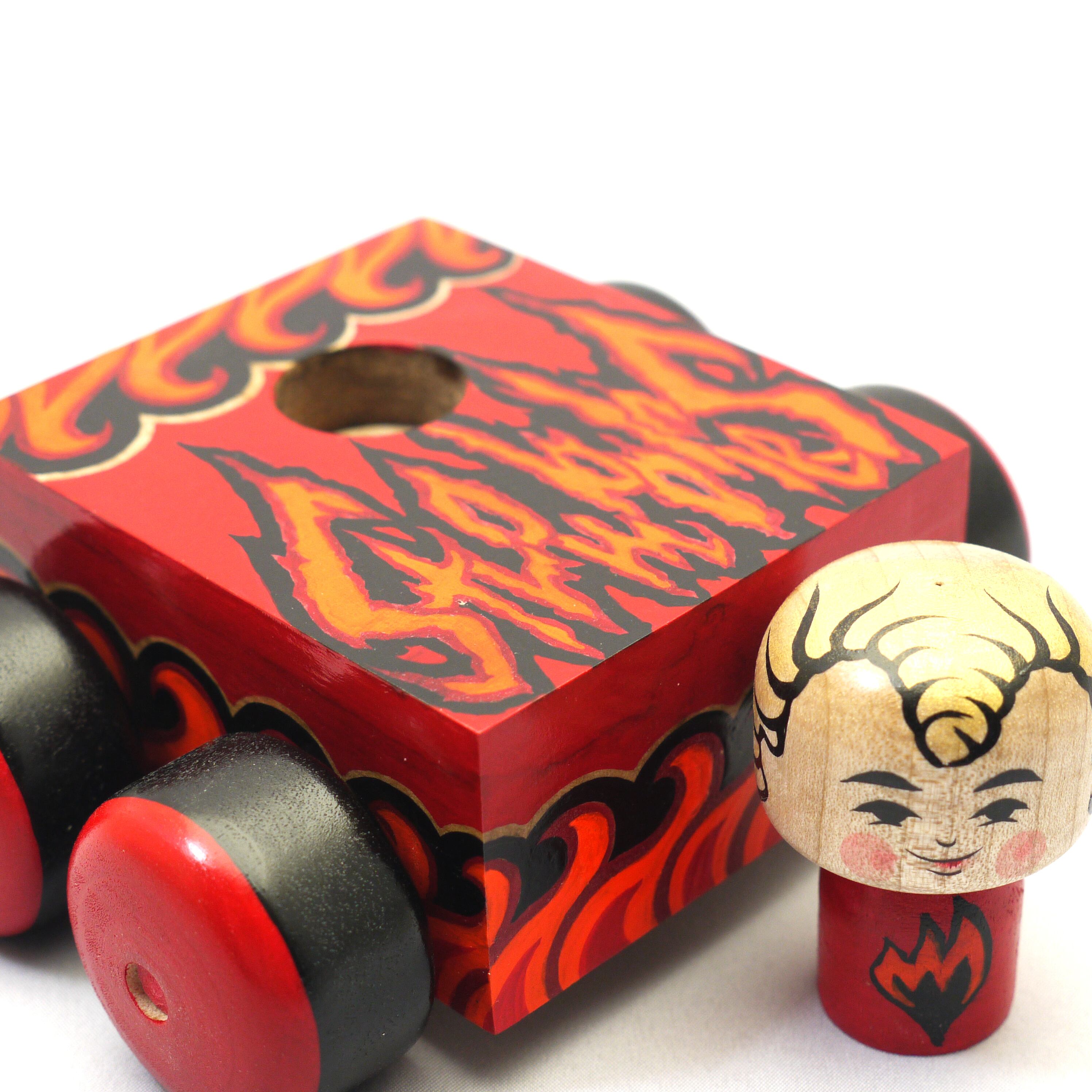 木地の削り出し、顔の描彩、仕上げ、を私が担当し、その他の胴体などの着彩をivokuma氏が担当して共作した作品は「Strombolies製」となります。