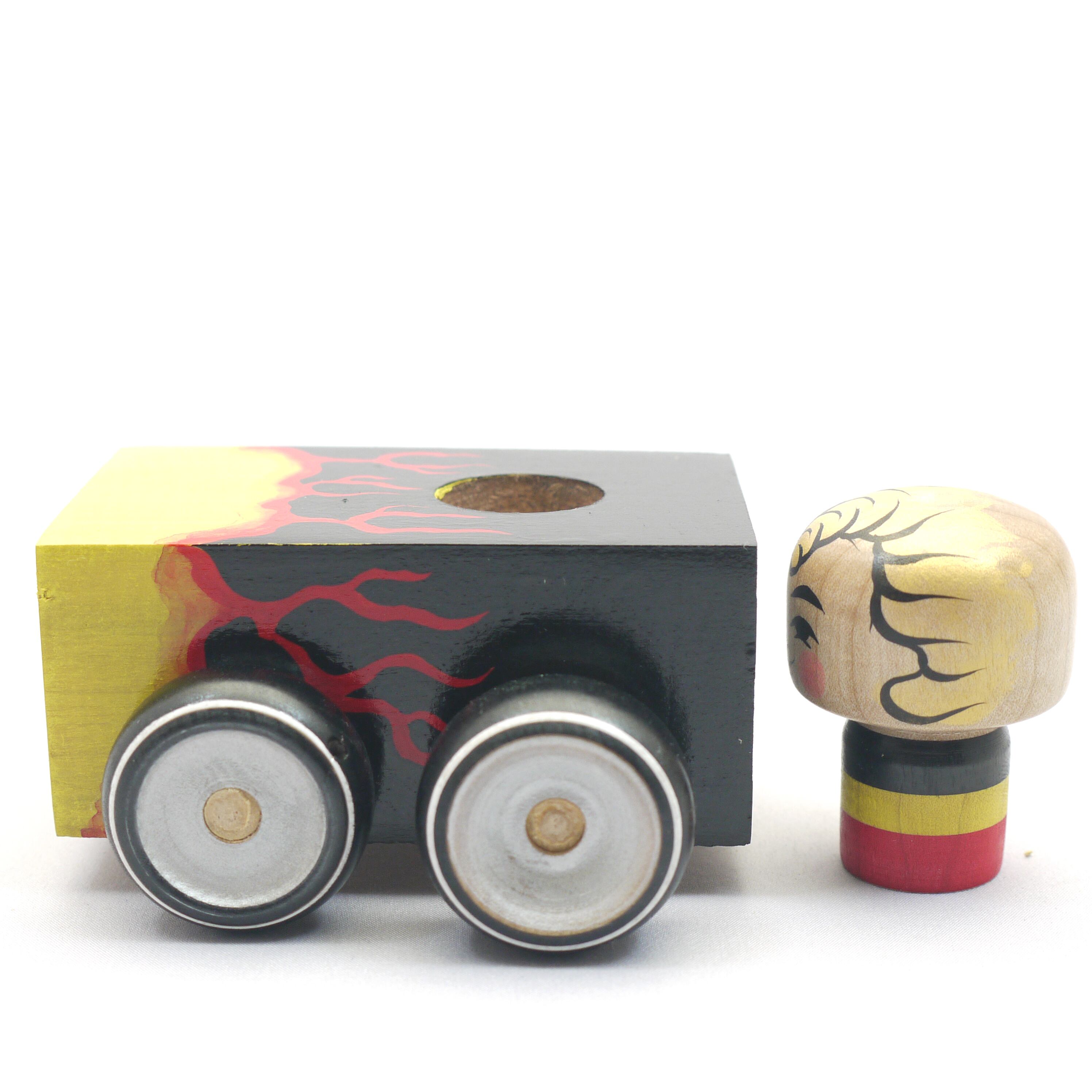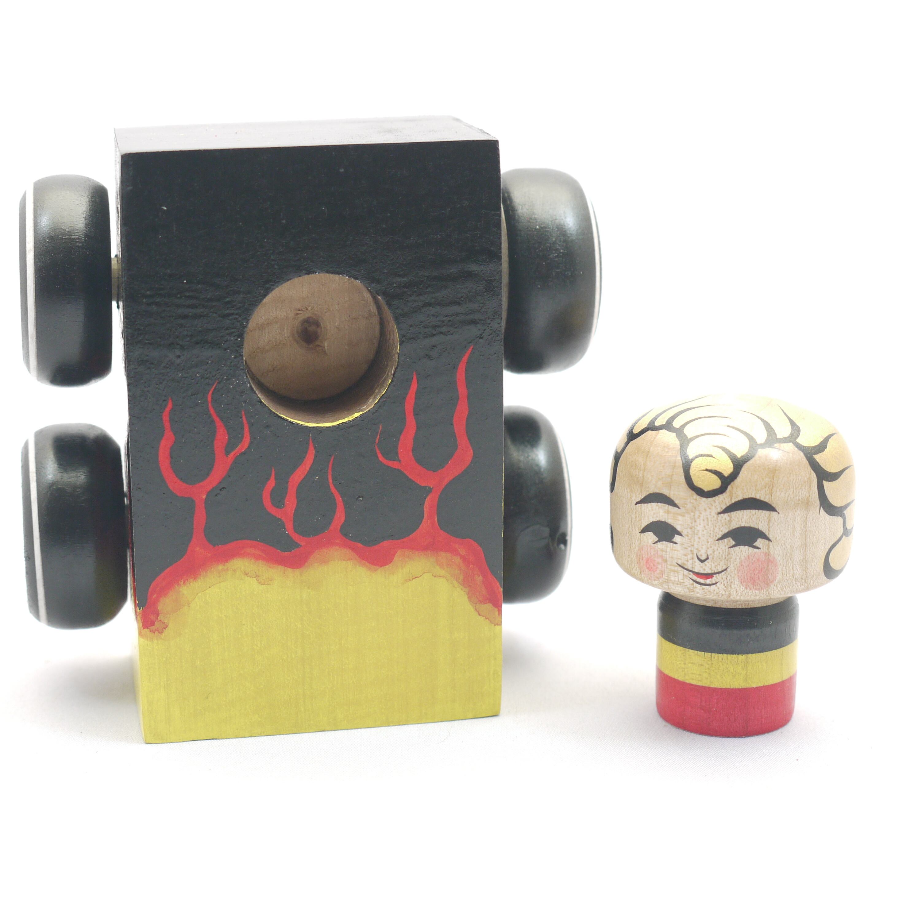 「猫」をモチーフにファイヤーパターンで車の木地玩具を製作しました。