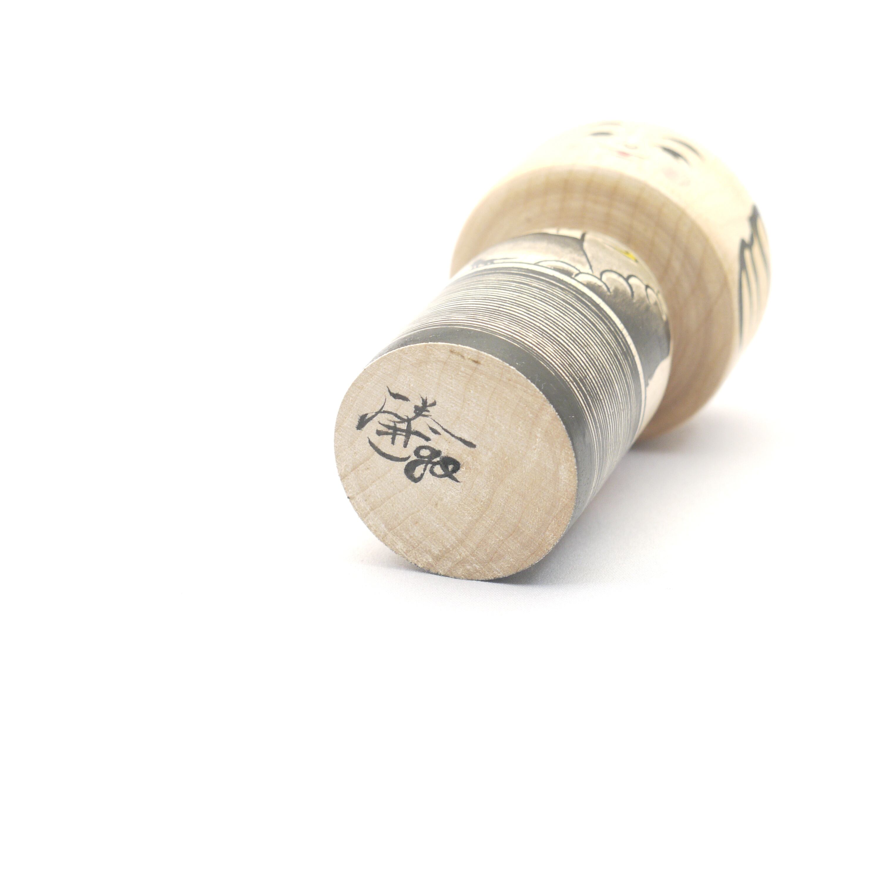 リーゼントヘアのパイセンに胴模様は墨汁の濃淡で雲、山、三日月を