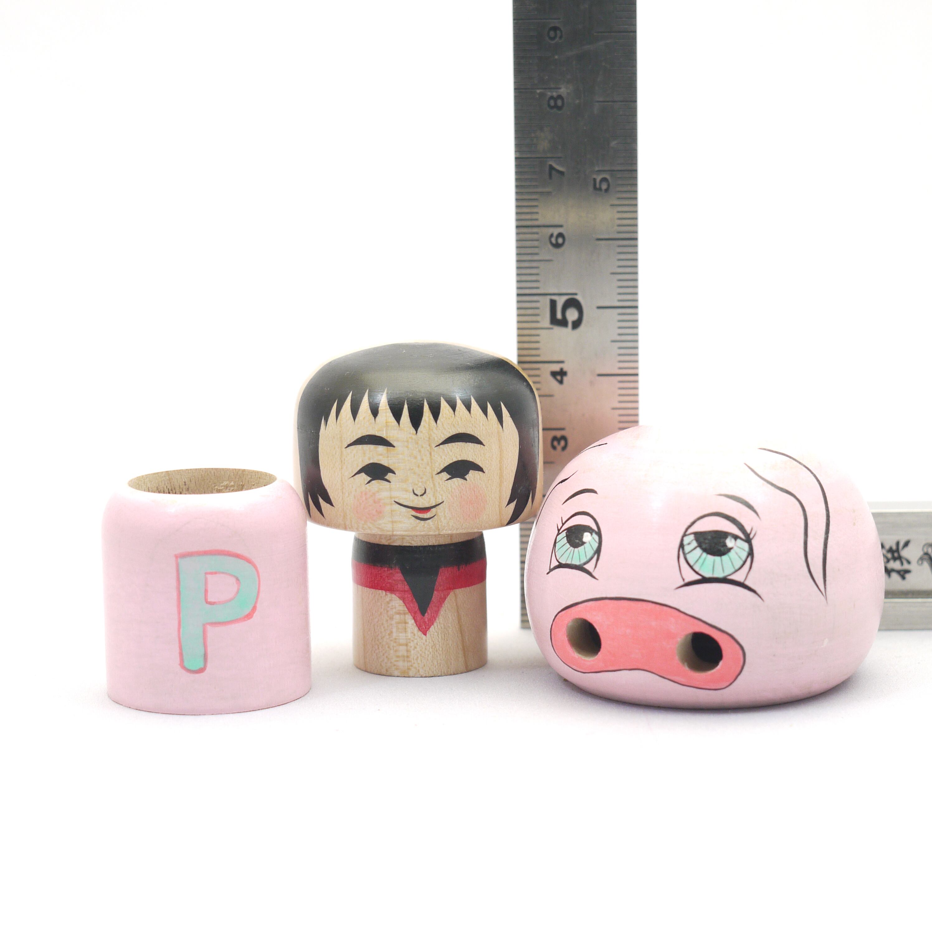 1.5寸(4.5cm)のこけしにボディとマスクを被せマトリョーシカ状にし、