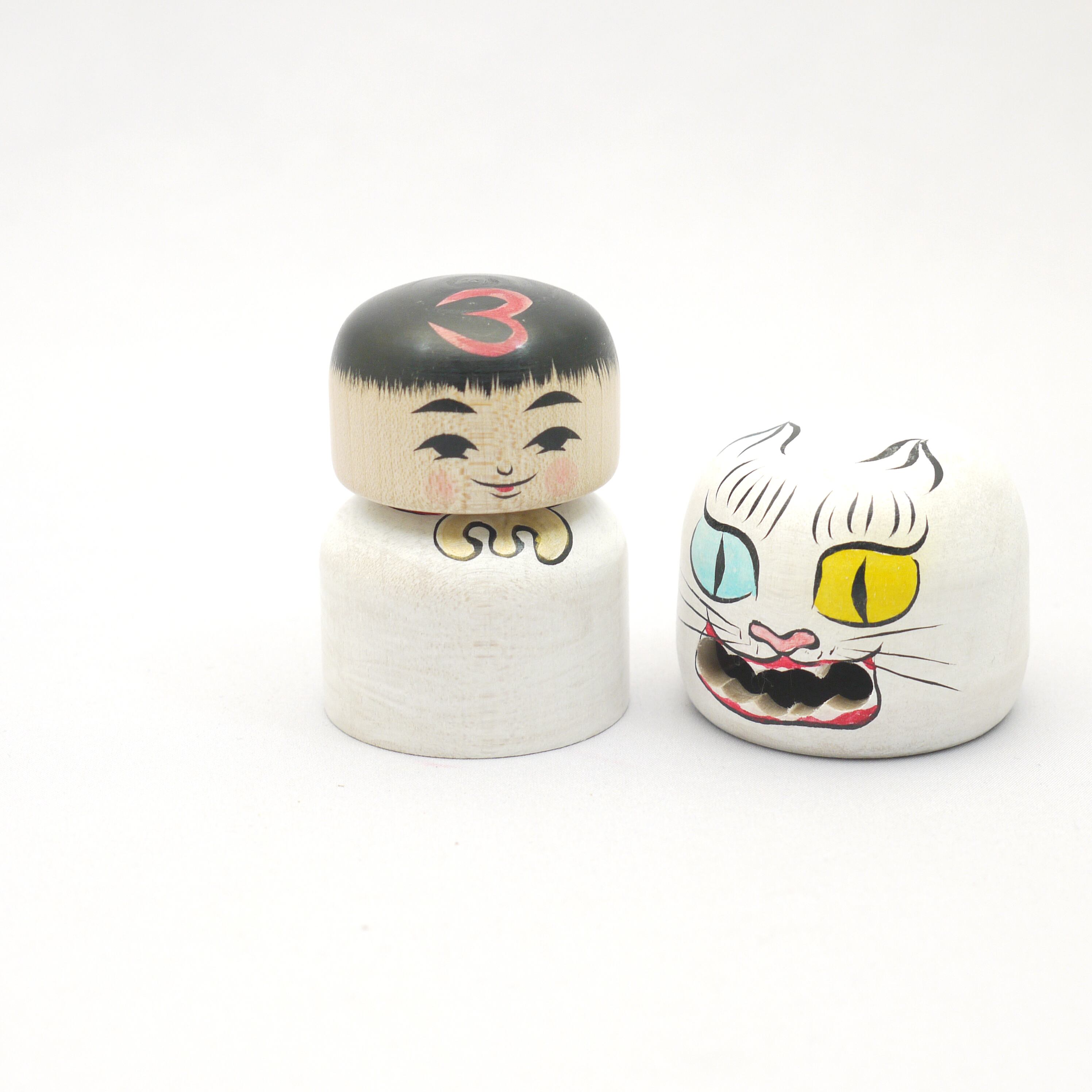 1.5寸(4.5cm)のこけしにボディとマスクを被せマトリョーシカ状にし、