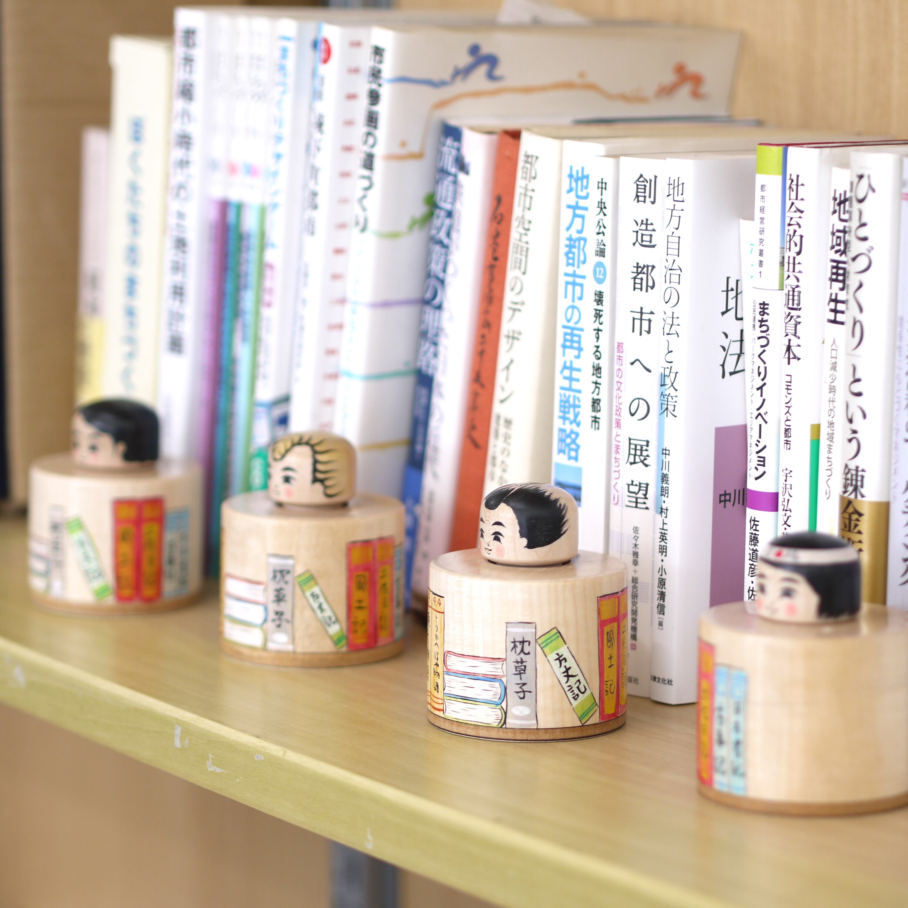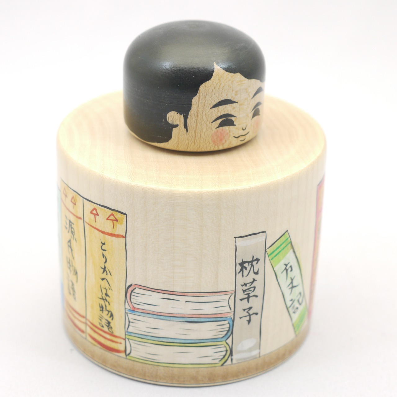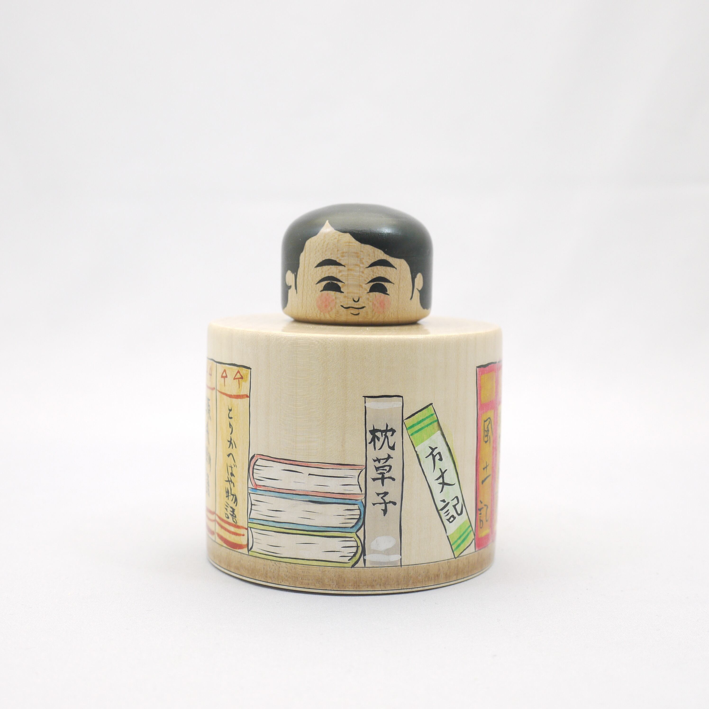 【読書えじこ】【本棚文様】【日本の古典文学模様】【Bookwoom】【2寸読書こけし付き】
