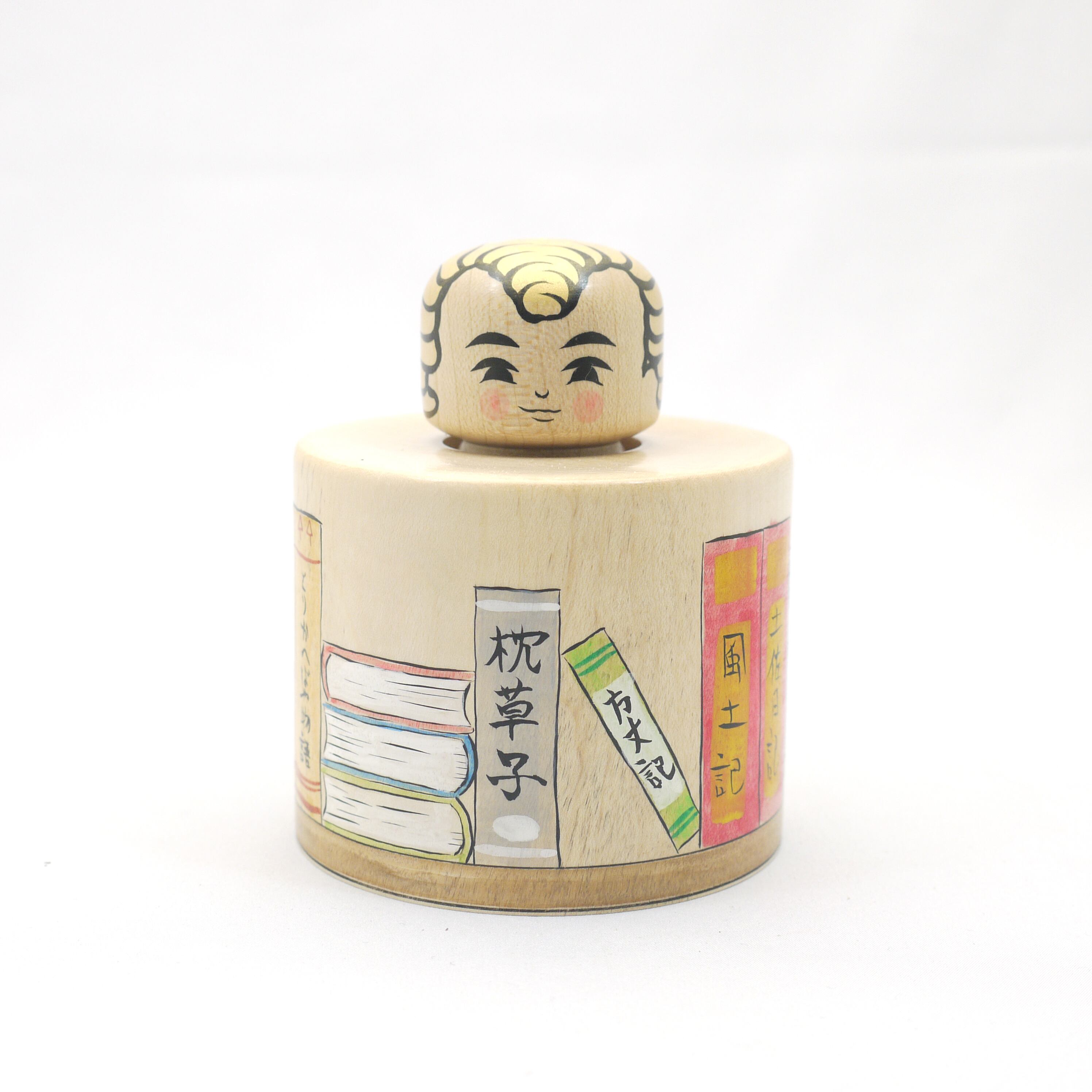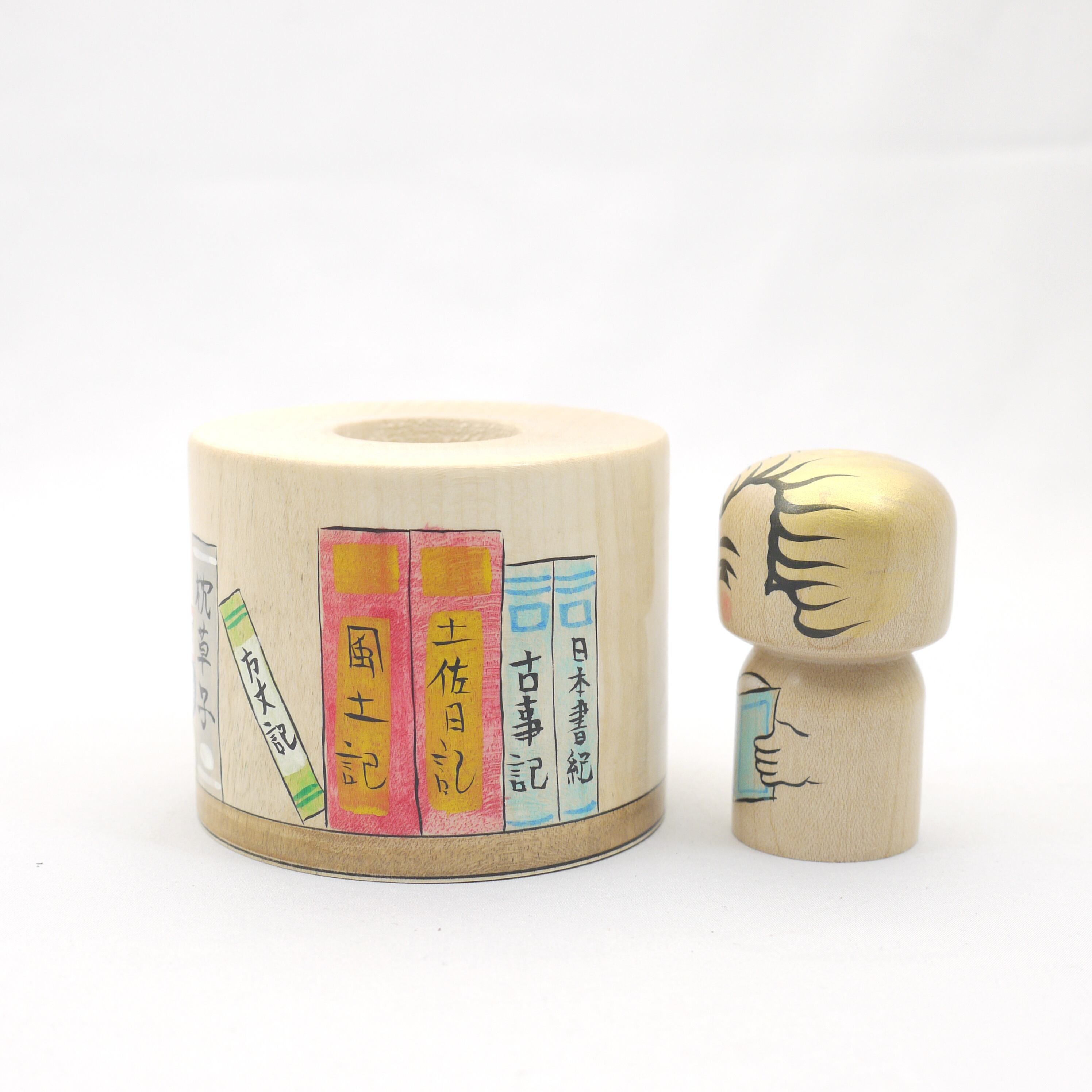 【読書えじこ】【本棚文様】【日本の古典文学模様】【Bookwoom】【2寸読書パイセンこけし付き】