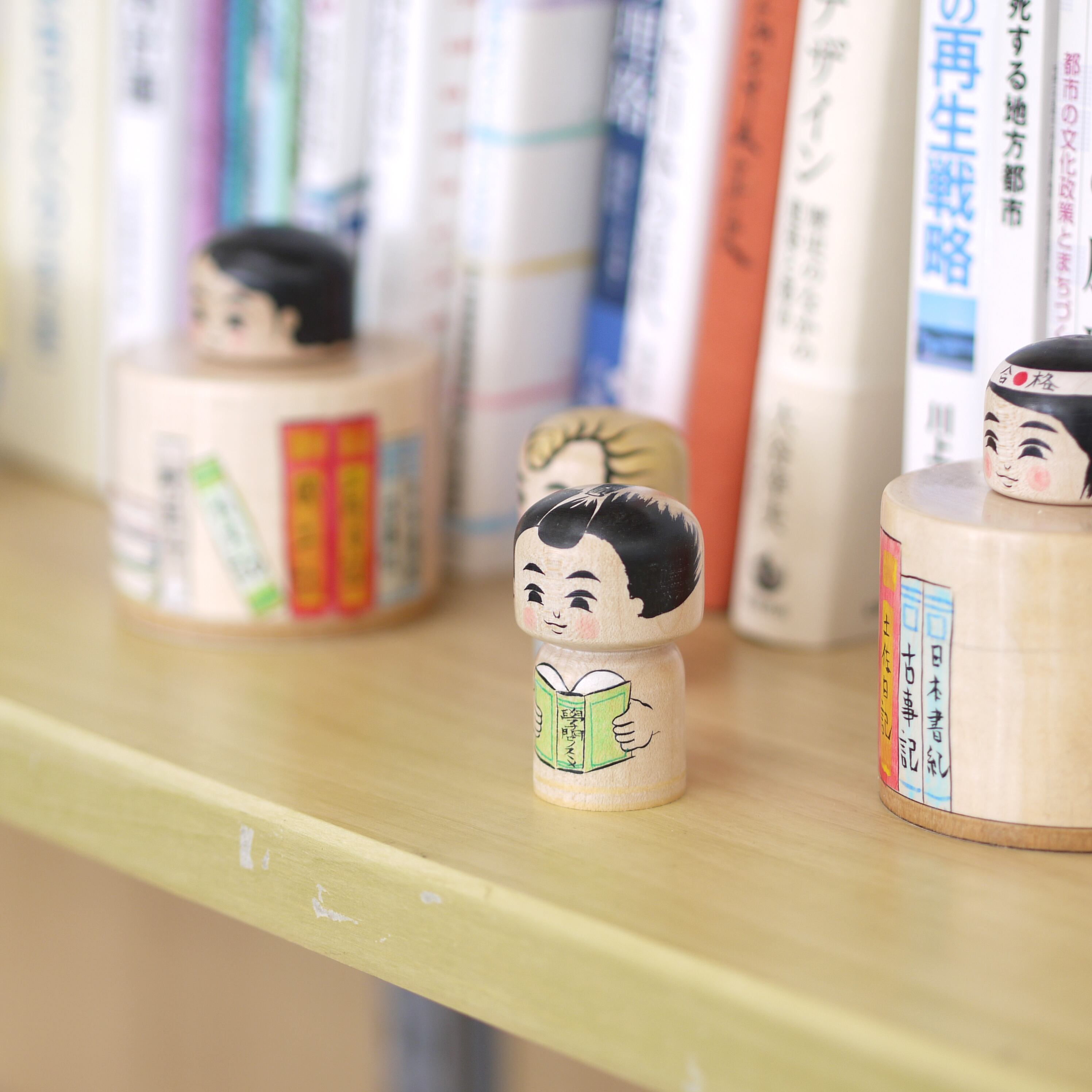 【読書えじこ】【本棚文様】【日本の古典文学模様】【Bookwoom】【2寸金次郎型読書こけし付き】number1