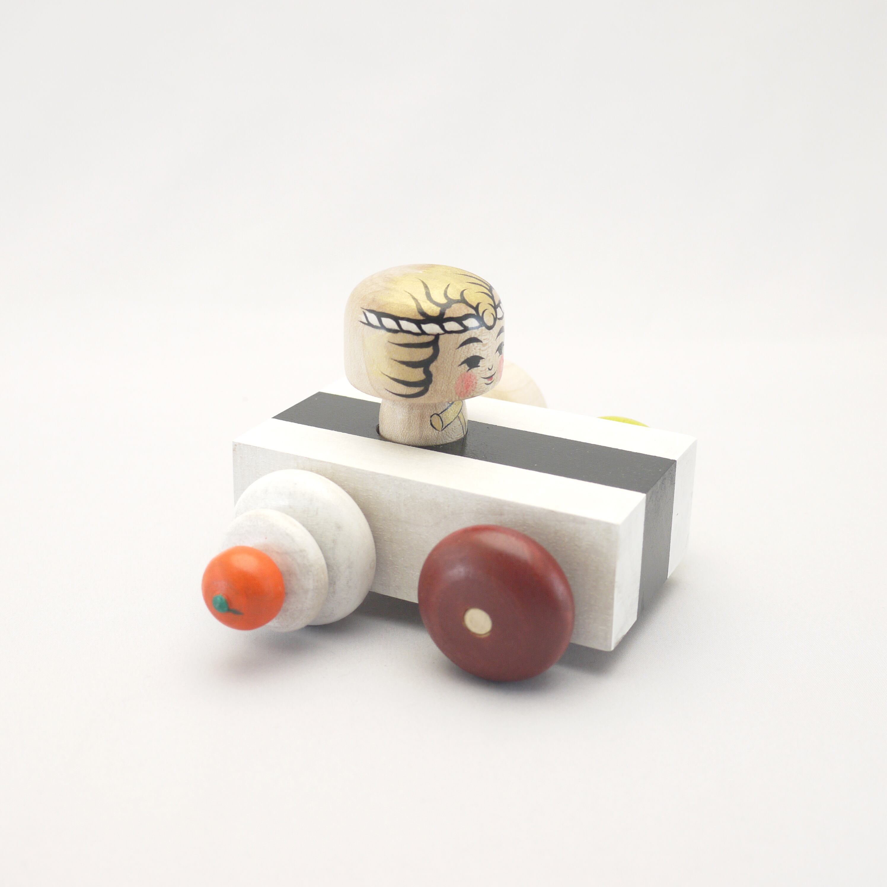 【スーパーモチカー】【車の木地玩具】 【super mochi Vehicle】【1.5寸鉢巻パイセンこけし付き】【初号機】