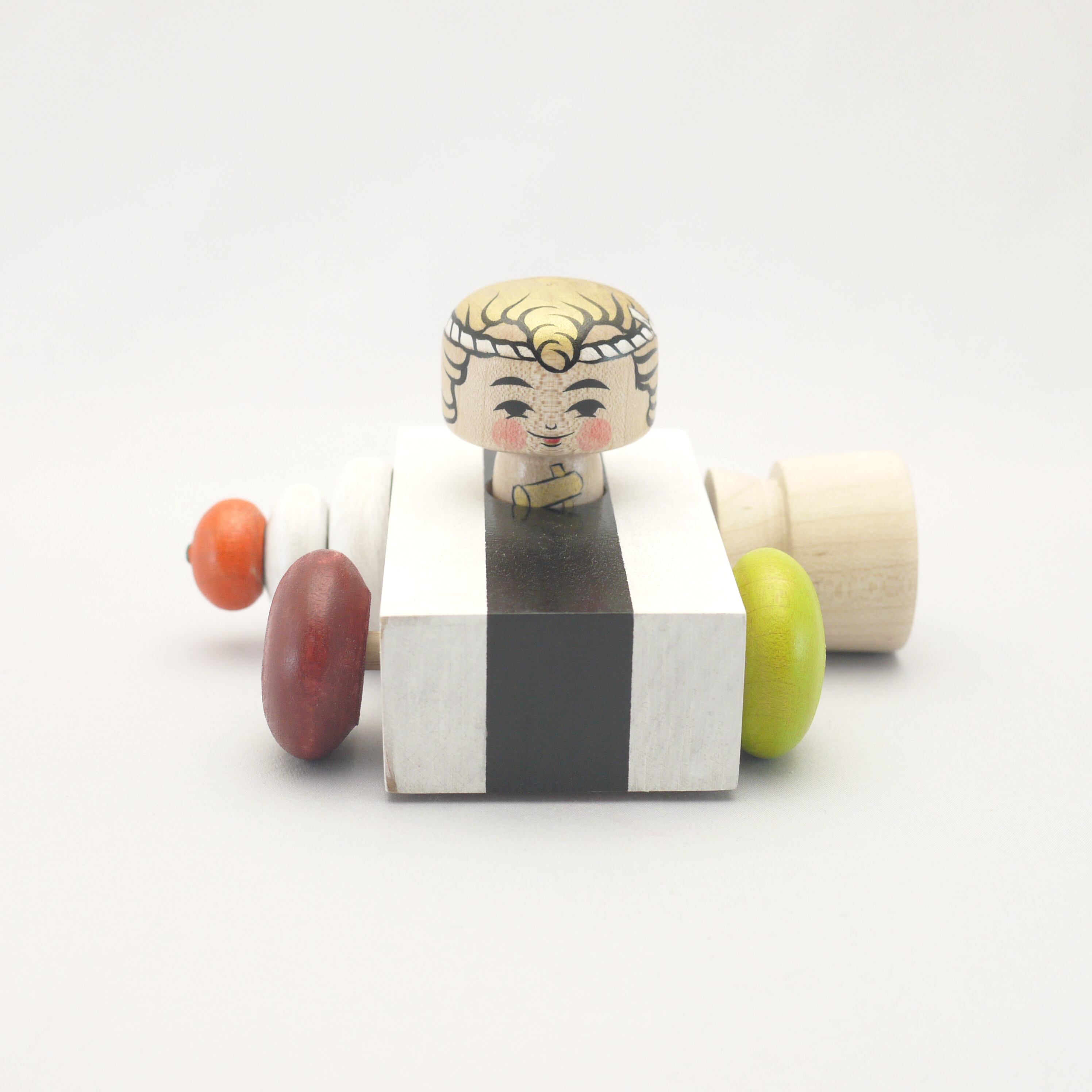 【スーパーモチカー】【車の木地玩具】 【super mochi Vehicle】【1.5寸鉢巻パイセンこけし付き】【弐号機】