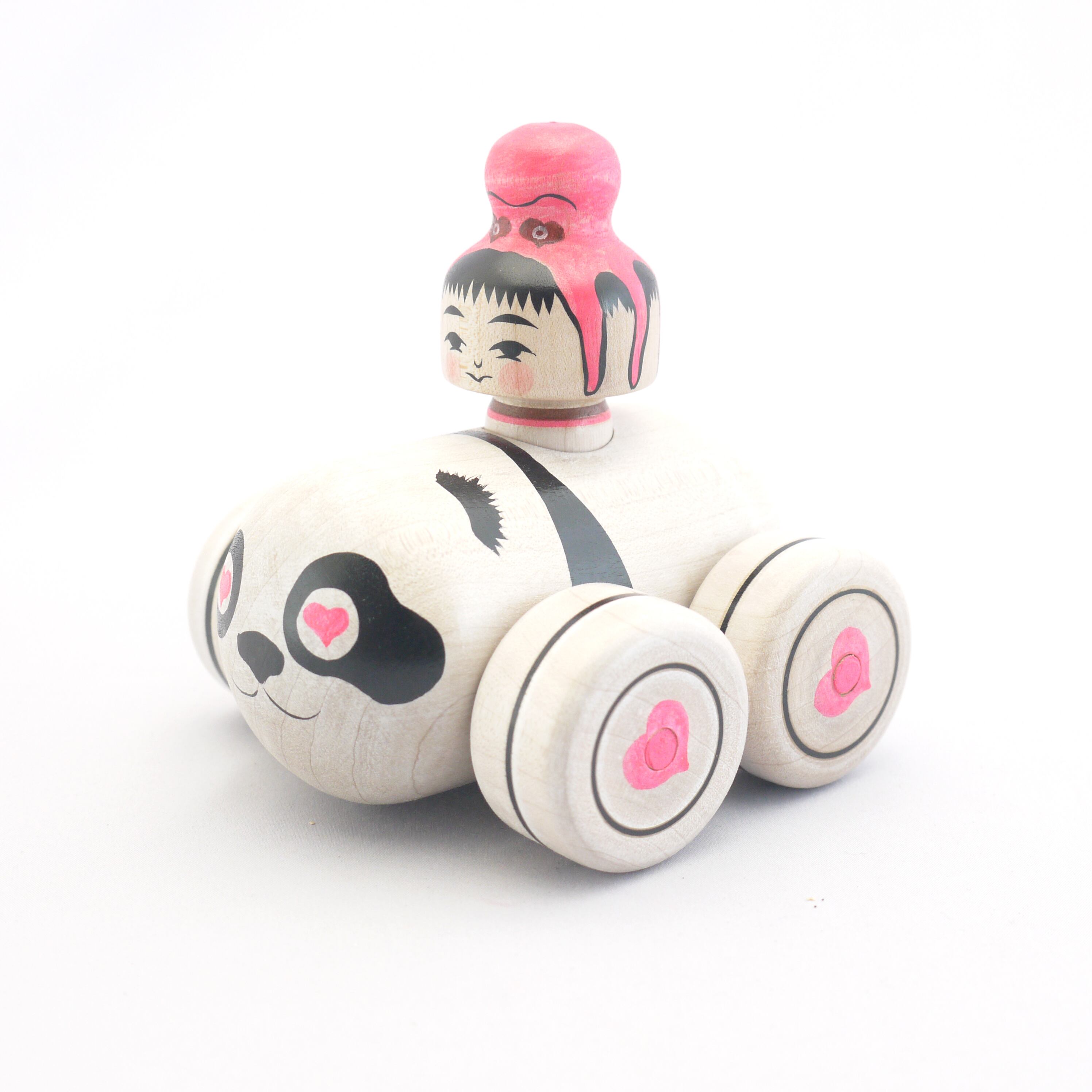 【パンダ車】【ヴァレンタイン2021限定車】【アニマルビークル】【Animal Vehicle】【St. Valentine's Day2021 limited edition】【【木地玩具】【2寸タコ乗せ入】