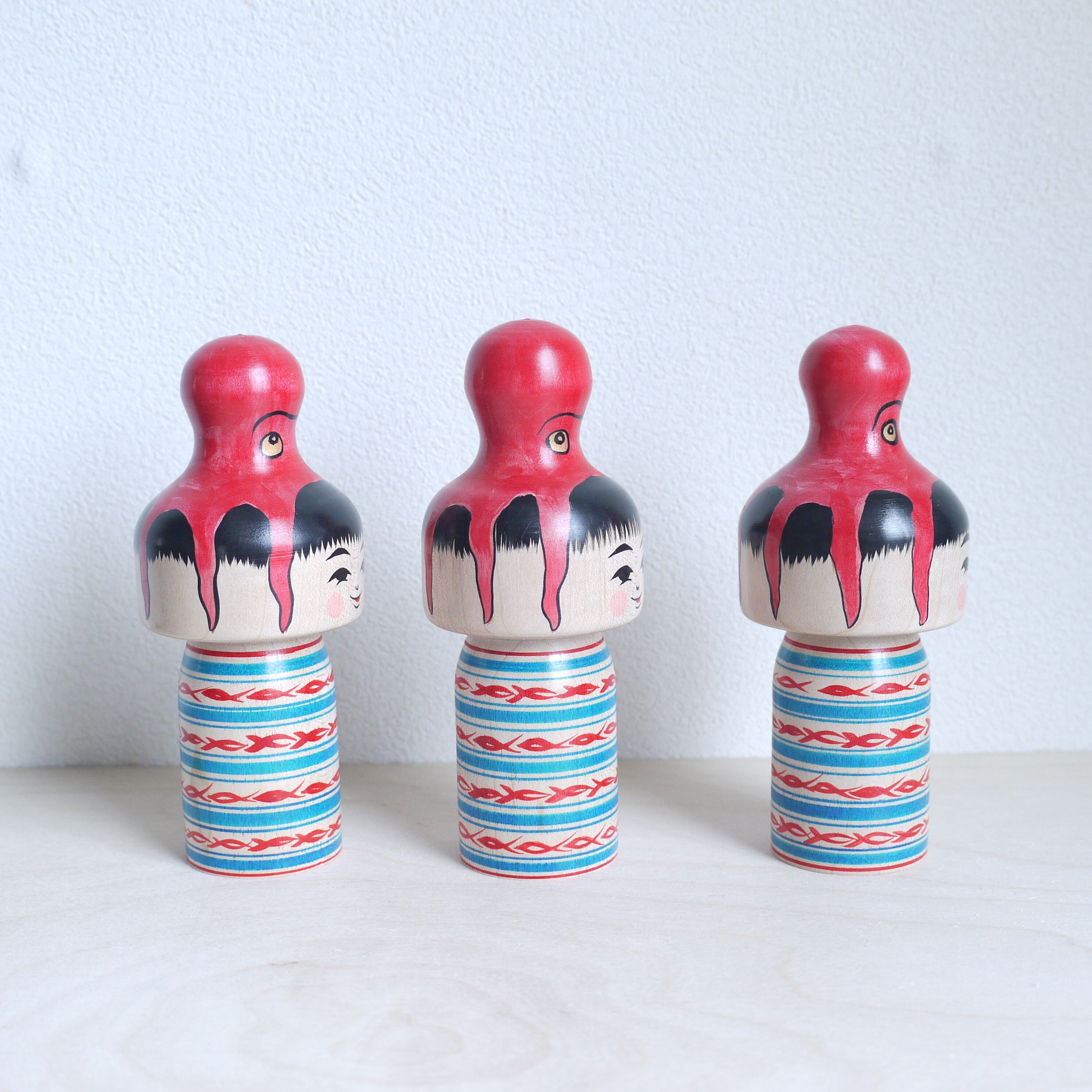 スタンダードなフィッシュボーダーパターンに赤いタコ。