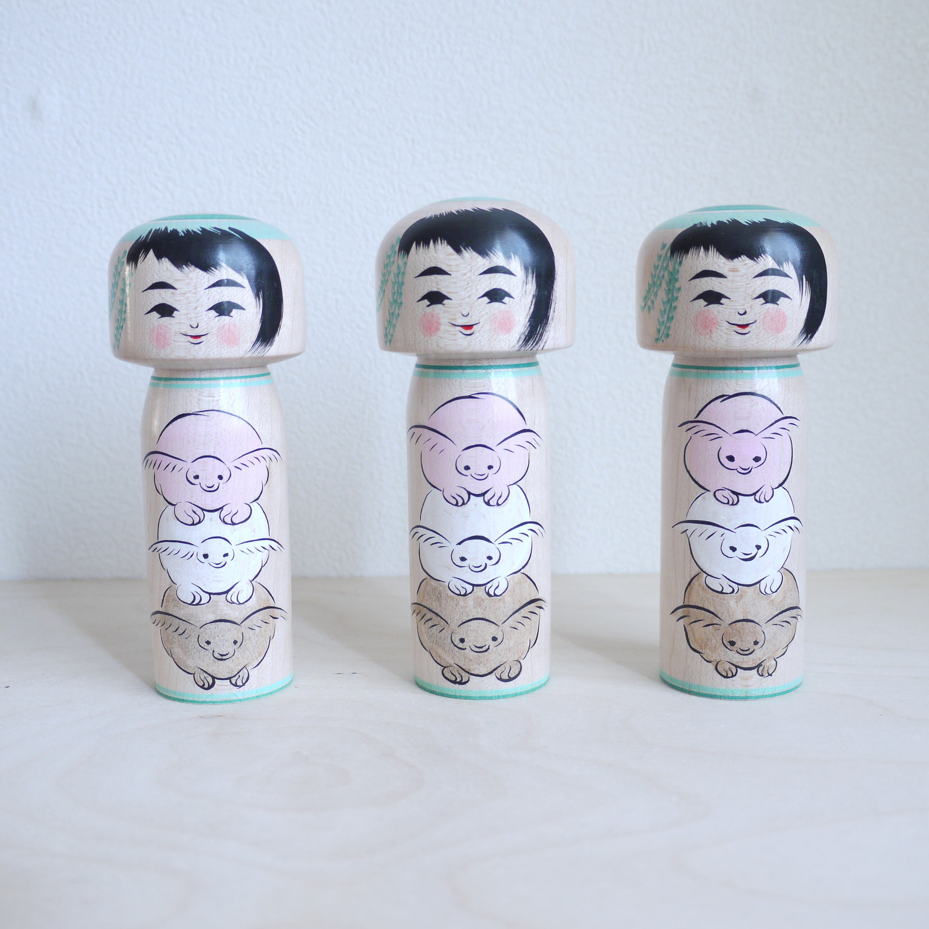 定番のトリコロールカラーの他にも季節や様々な事象をモチーフにしてこけしを作っております。