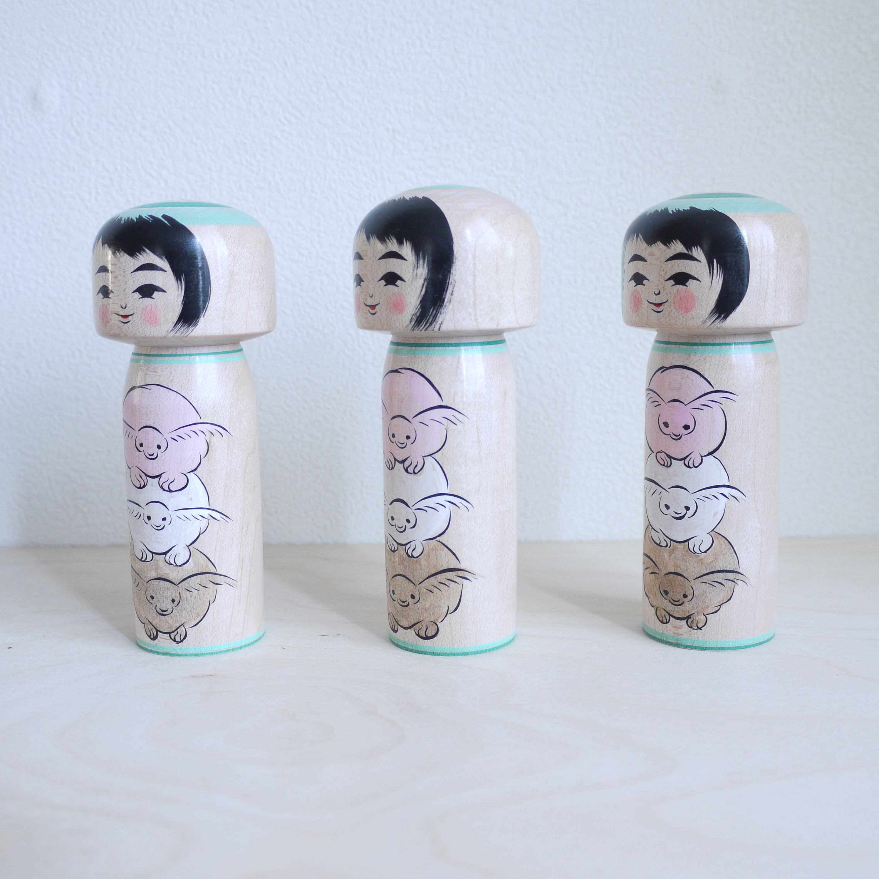 石巻こけしのスタンダードなフォルム4寸のカラーバリエーション。