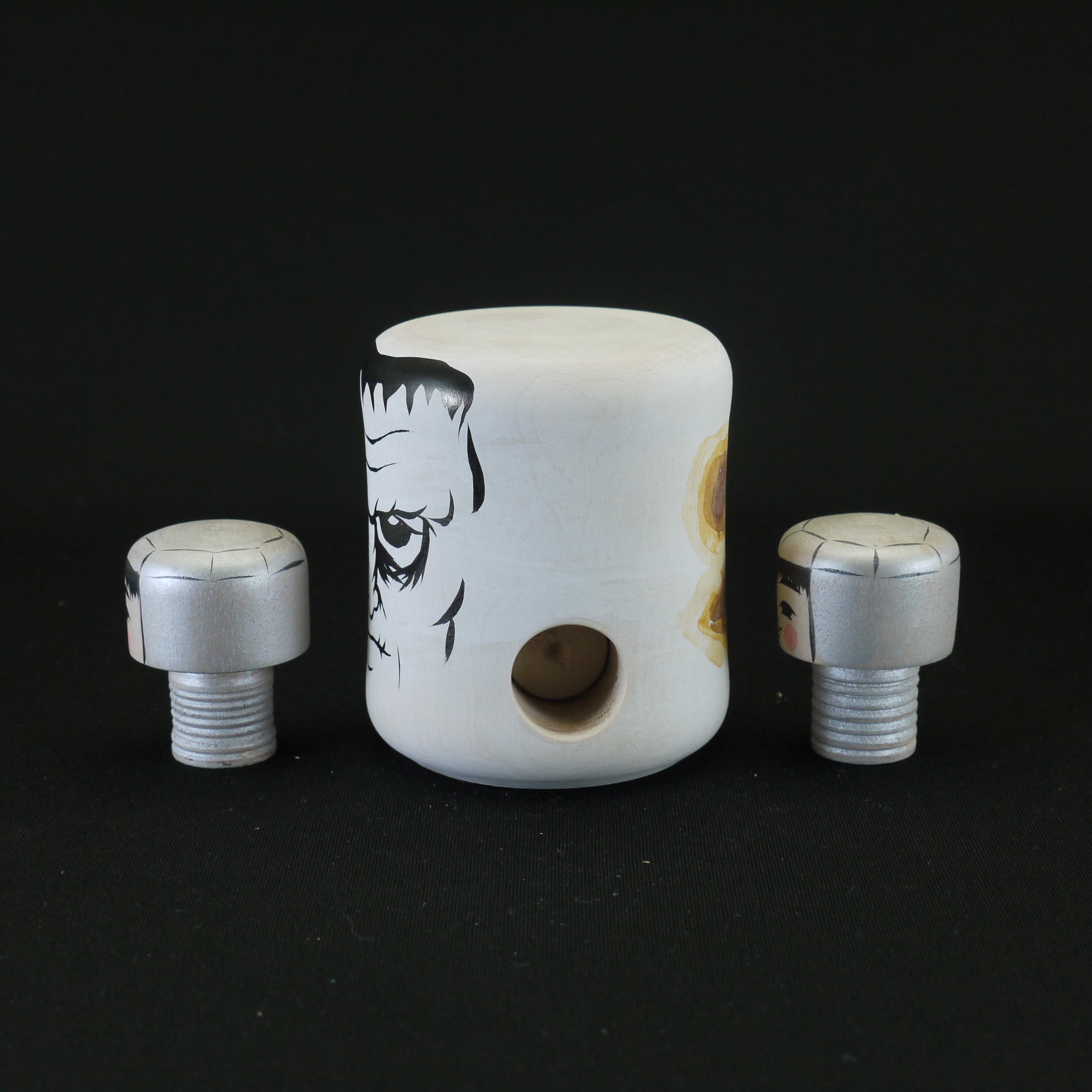 ボルトをイメージした「こけし」が頭部の左右に入ります。
