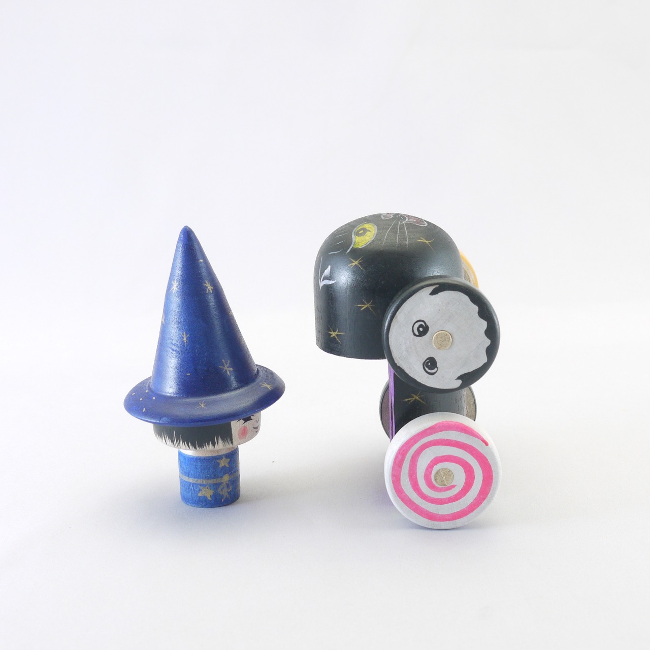 とんがり帽子をかぶった見習い魔法使いが猫車に乗ってお出かけです。