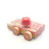 クワッ!と口を開いた蛇のような車の現代木地玩具。