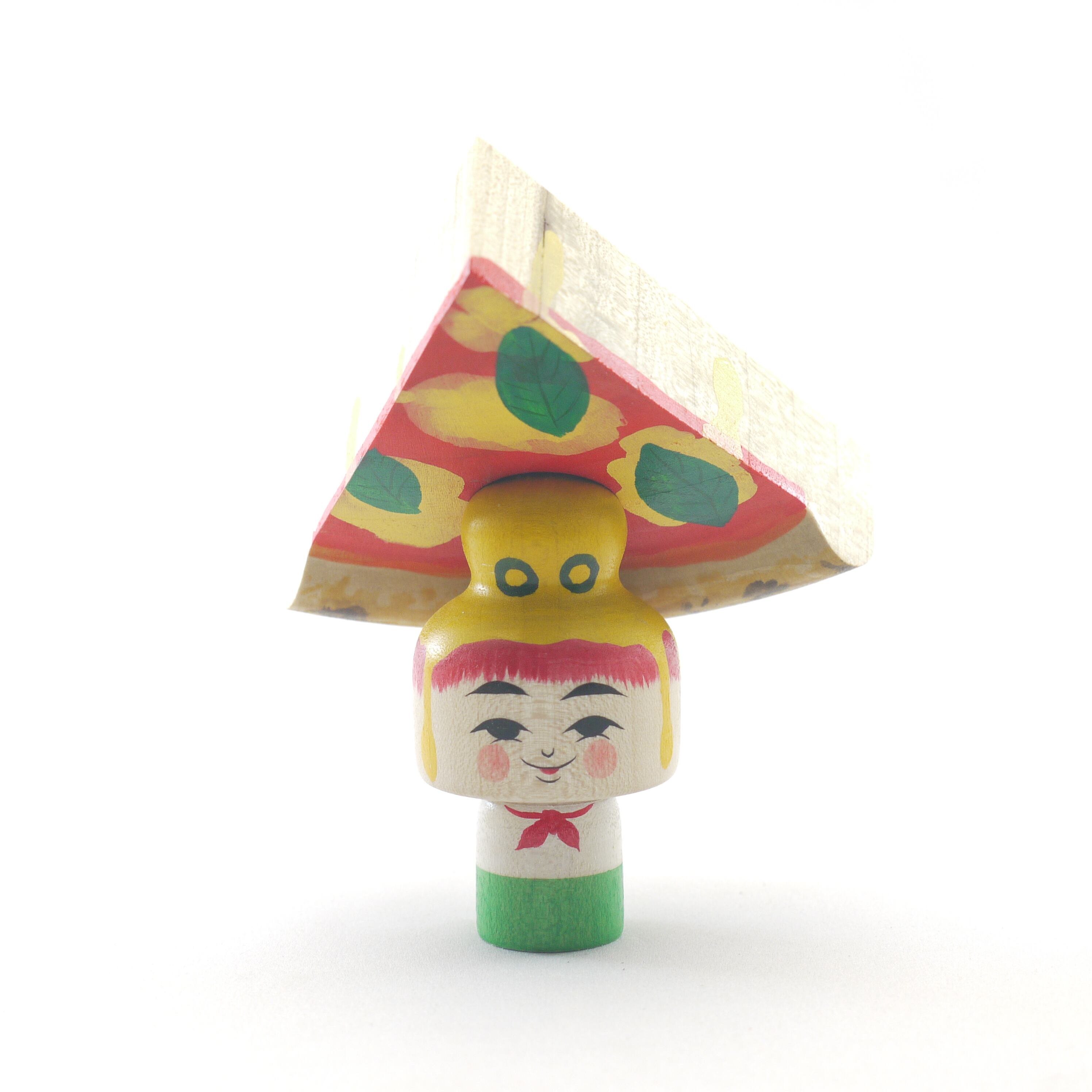 藁籠に入り込む子供を模した「えじこ」タイプのこけしの様に、ピザに入り込むこけし。