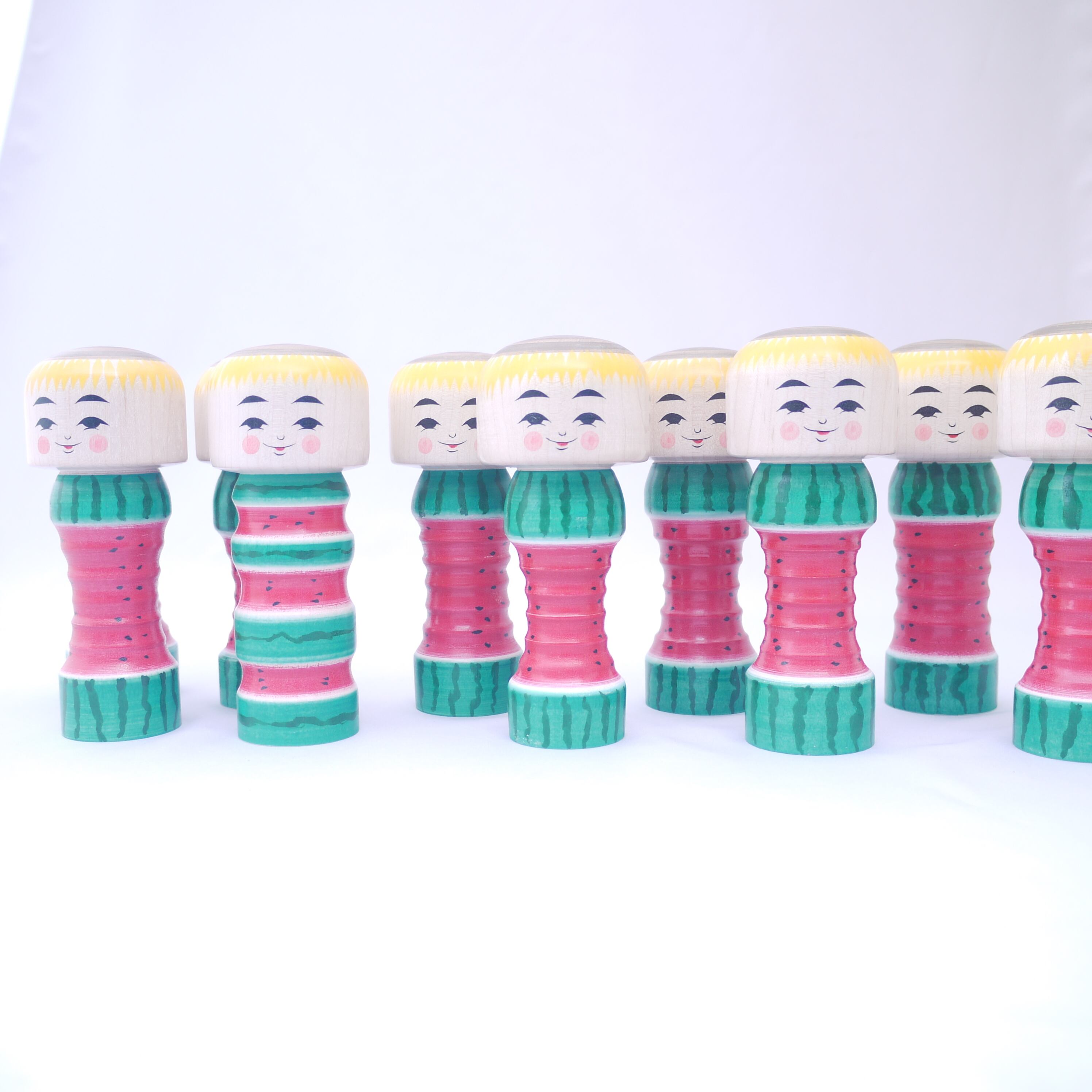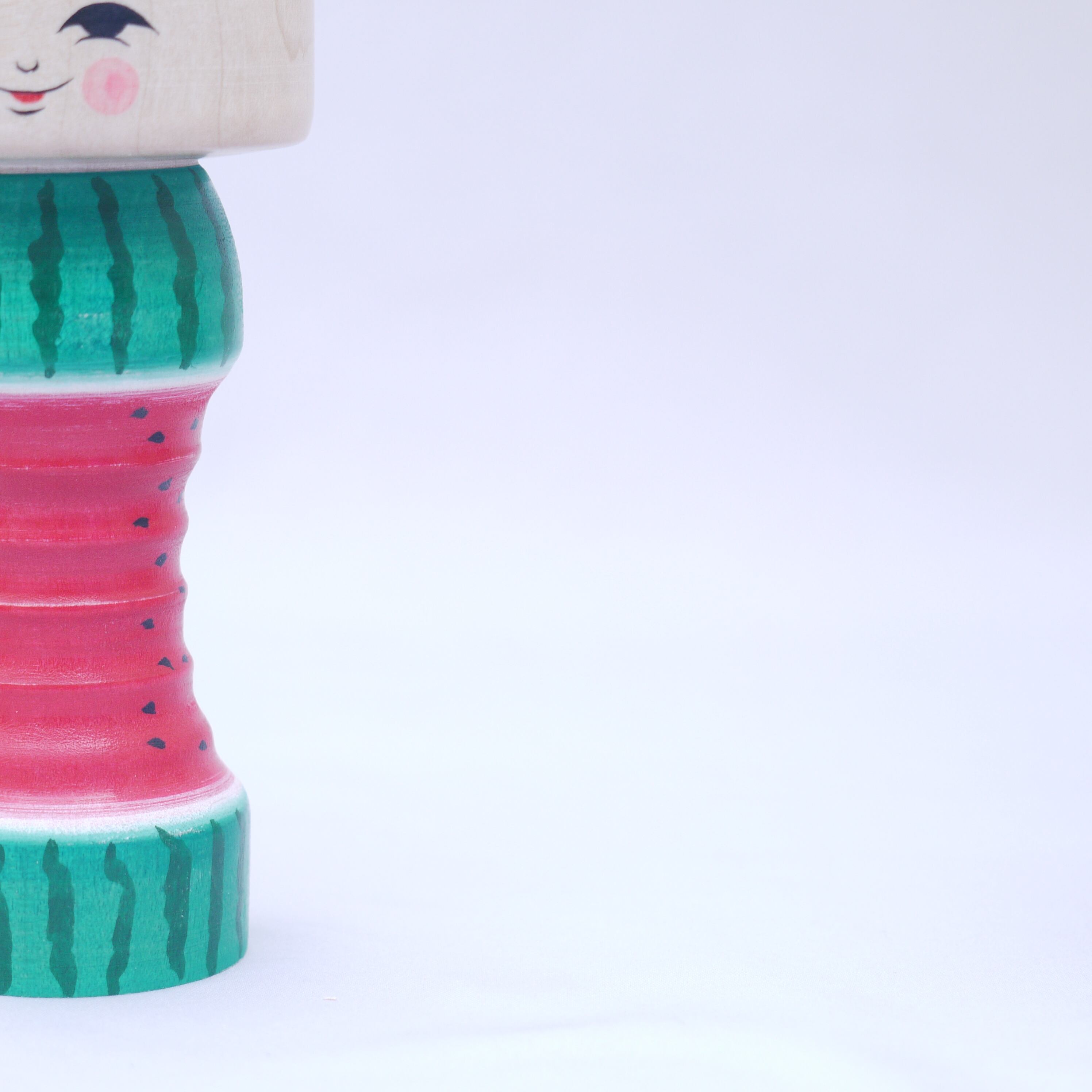 胴はスイカのでデザインですが、ひとくちかじった様な歯型のような凸凹を削り込みました。