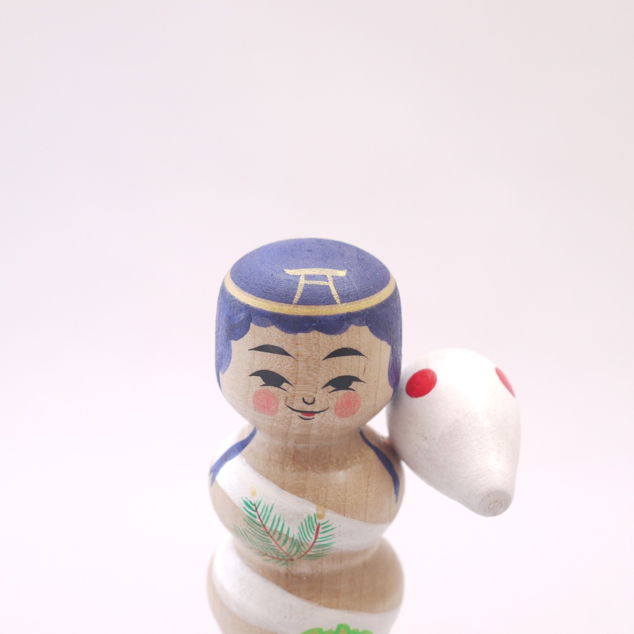 そして今回、石巻在住でお笑い芸人としても活動している「山内チヨプミ」さんに目入れを担当していただきました。この山内さんと私で新たに結成したお笑いコンビ「石巻水族館」の初仕事がこの縁起物製作ということになります。山内さんは巳年生まれの47歳、来年は年男です。来年の年男が新たに結成したコンビの初仕事で製作に携わった縁起尽くしの干支こけしです。