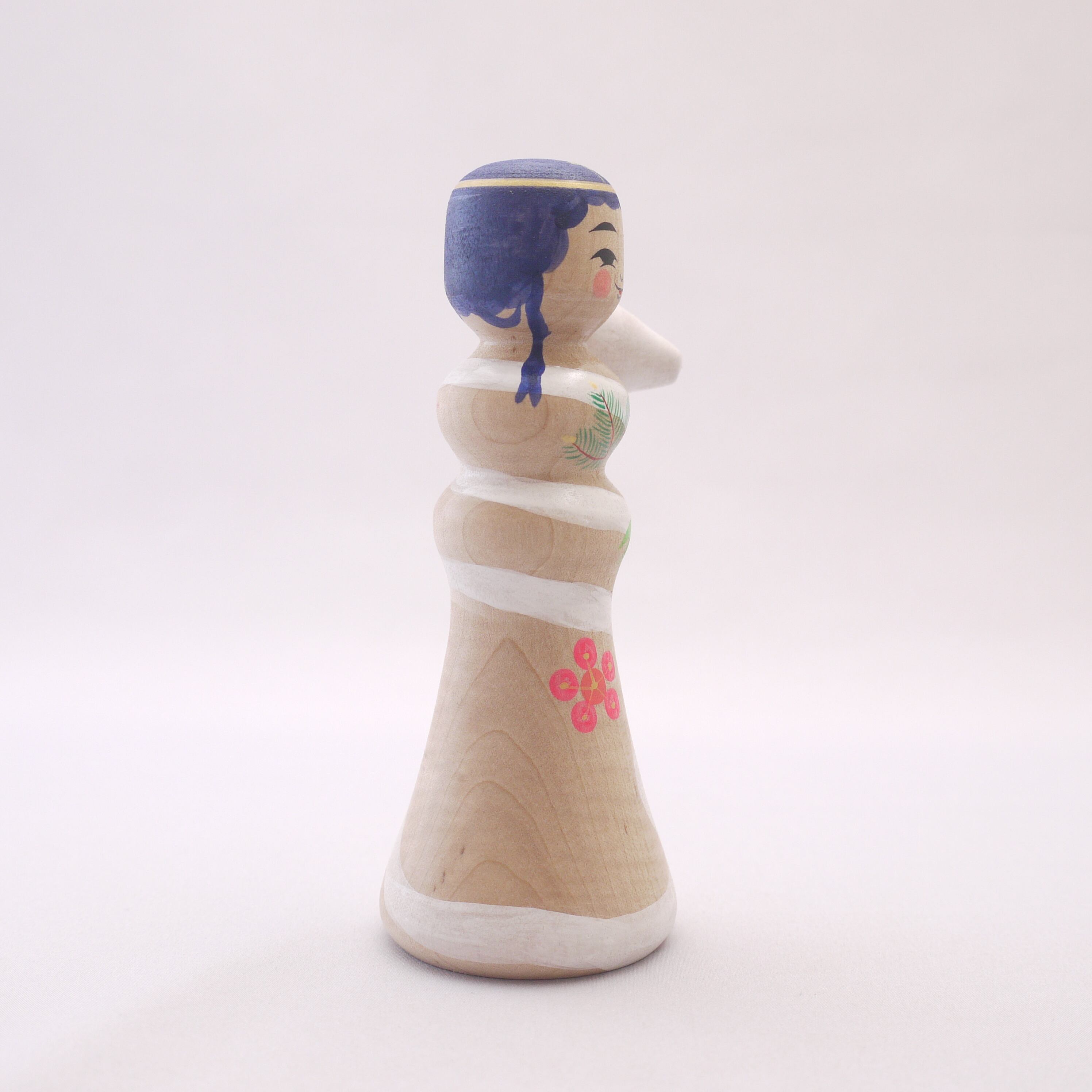 2025年は巳年ということで蛇をモチーフに製作した2種のうち、こちらは「天女巳こけし」になります。